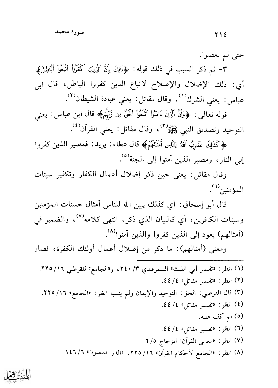 (¬8) انظر: "الجامع لأحكام القرآن" 16/ 225، "الدر المصون" 6/ 146.