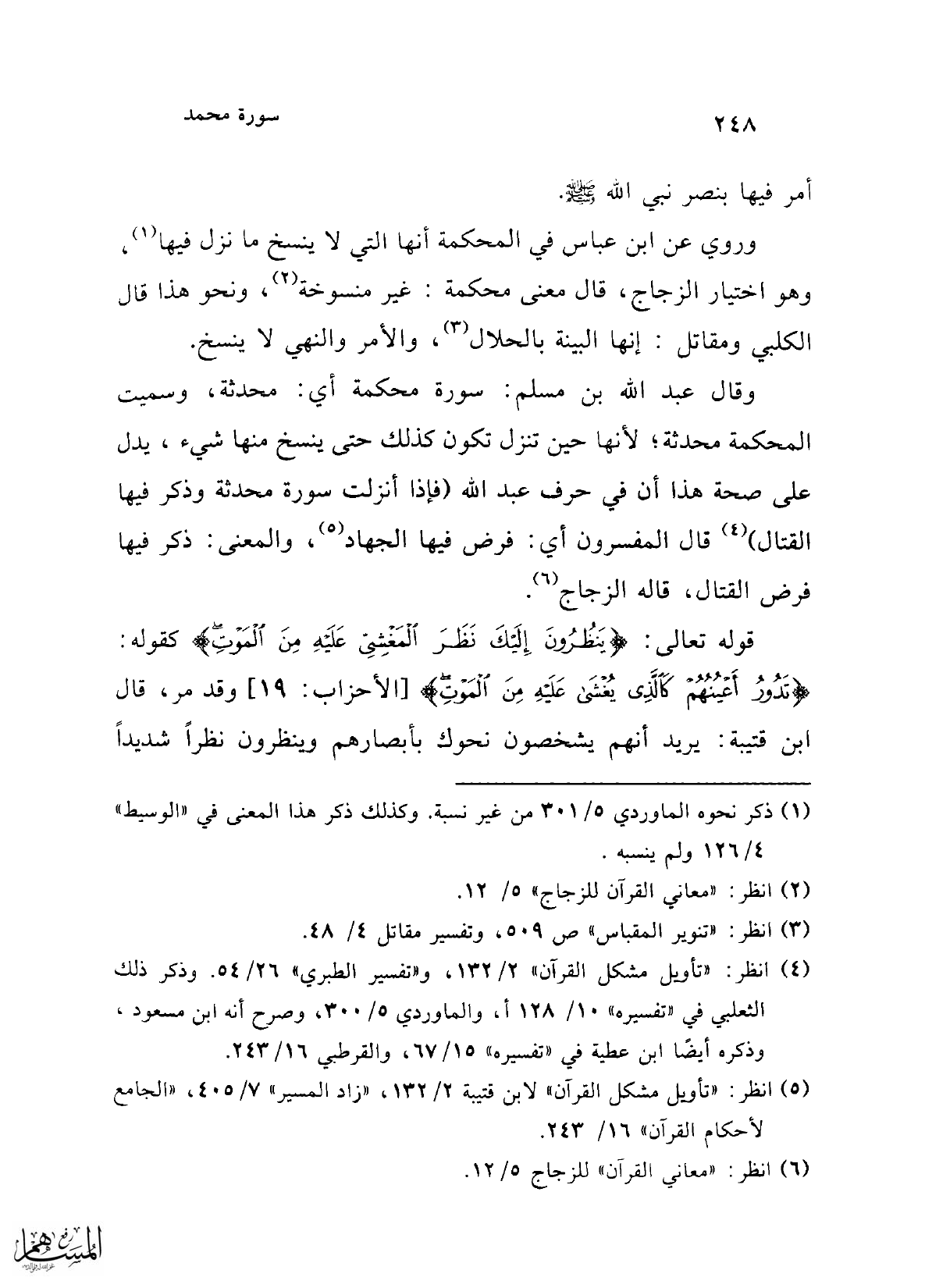 (¬5) انظر: "تأويل مشكل القرآن" لابن قتيبة 2/ 132، "زاد المسير" 7/ 405، "الجامع لأحكام القرآن" 16/ 243.