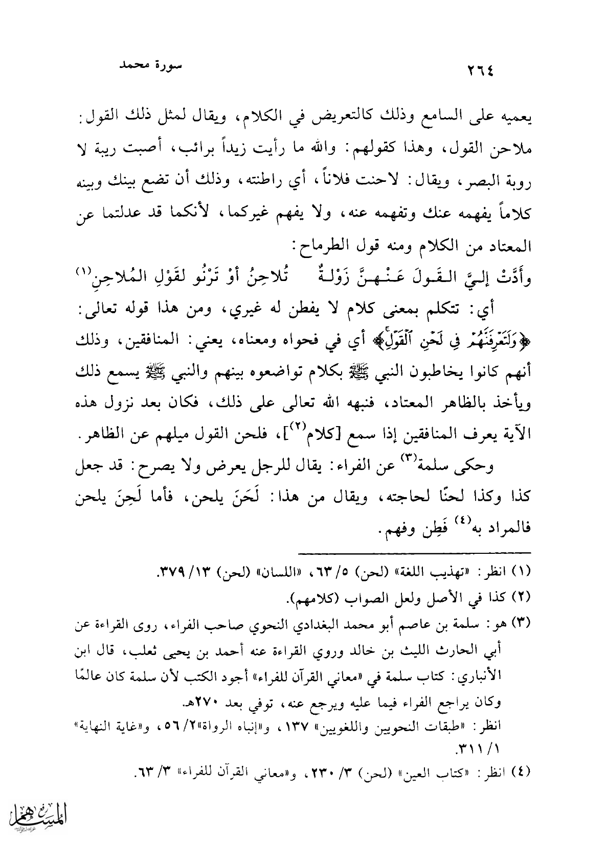 (¬4) انظر: "كتاب العين" (لحن) 3/ 230، و"معاني القرآن للفراء" 3/ 63.