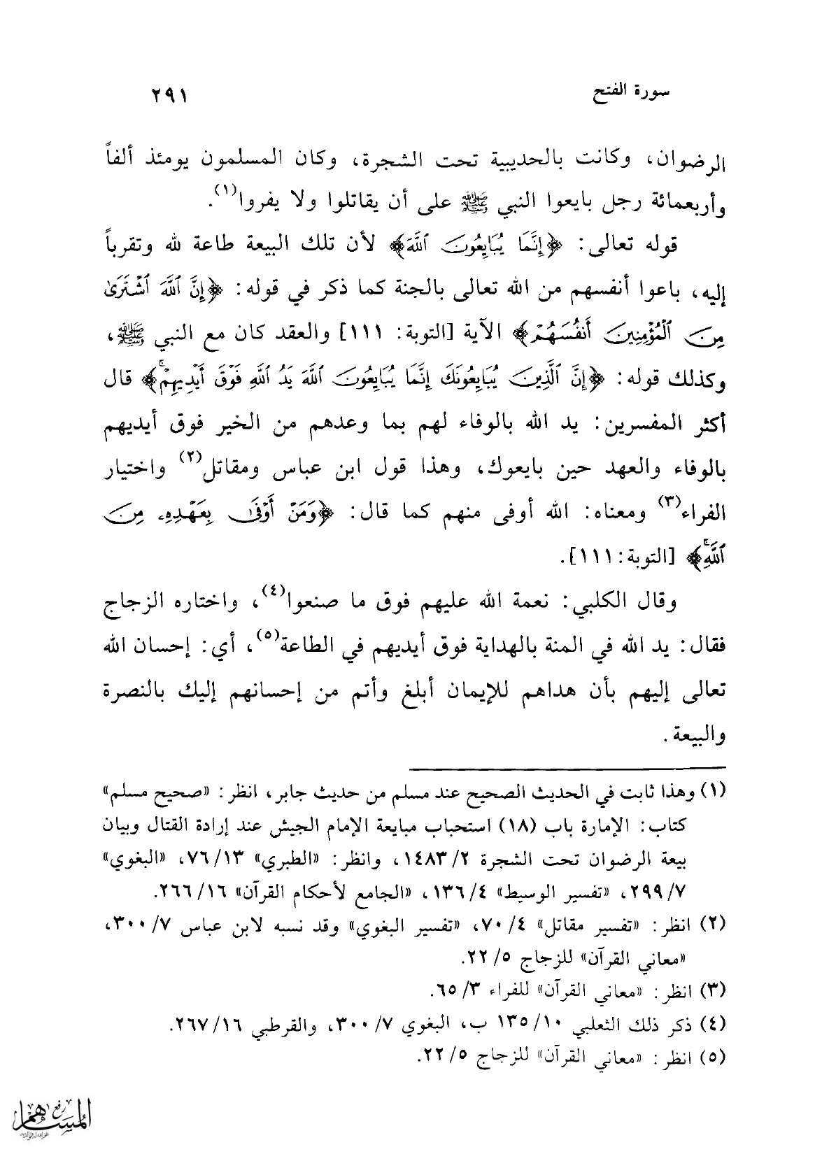 (¬1) وهذا ثابت في الحديث الصحيح عند مسلم من حديث جابر، انظر: "صحيح مسلم" كتاب: الإمارة باب (18) استحباب مبايعة الإمام الجيش عند إرادة القتال وبيان بيعة الرضوان تحت الشجرة 2/ 1483، وانظر: "الطبري" 13/ 76، "البغوي" 7/ 299، "تفسير الوسيط" 4/ 136، "الجامع لأحكام القرآن" 16/ 266.