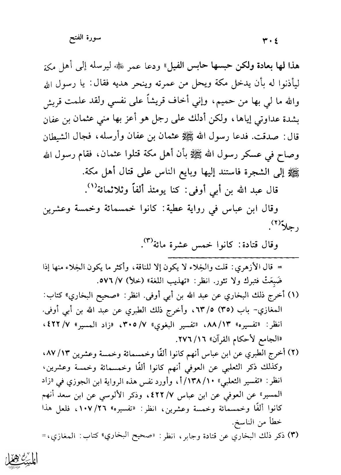 (¬1) أخرج ذلك البخاري عن عبد الله بن أبي أوفى. انظر: "صحيح البخاري" كتاب: المغازي- باب (35) 5/ 63، وأخرج ذلك الطبري عن عبد الله بن أبي أوفى. انظر: "تفسيره" 13/ 88، "تفسير البغوي" 7/ 305، "زاد المسير" 7/ 422، "الجامع لأحكام القرآن" 16/ 276.