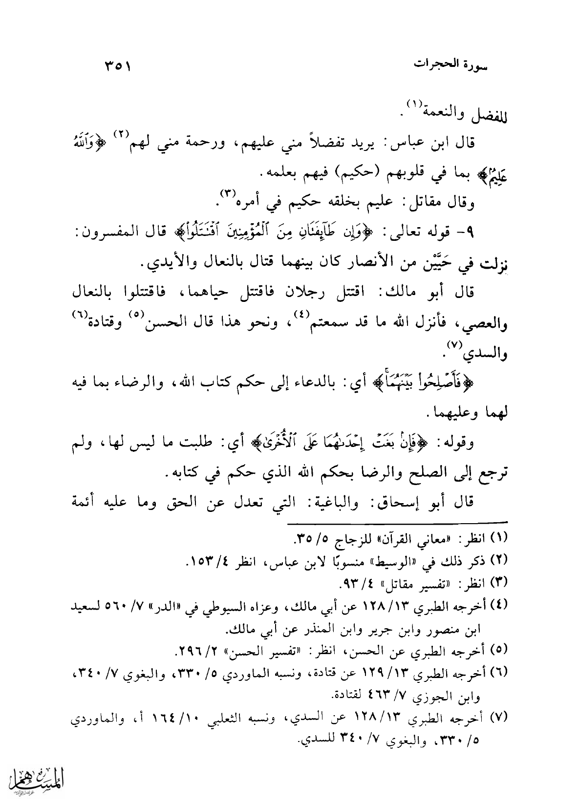 9 - قوله تعالى: {وَإِنْ طَائِفَتَانِ مِنَ الْمُؤْمِنِينَ اقْتَتَلُوا} قال المفسرون: نزلت في حَيَّيْن من الأنصار كان بينهما قتال بالنعال والأيدي.