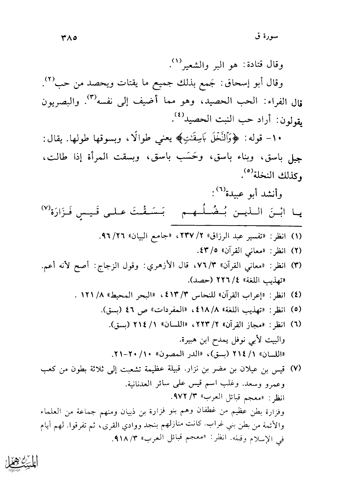 (¬5) انظر: "تهذيب اللغة" 8/ 418، "المفردات" ص 46 (بسق).