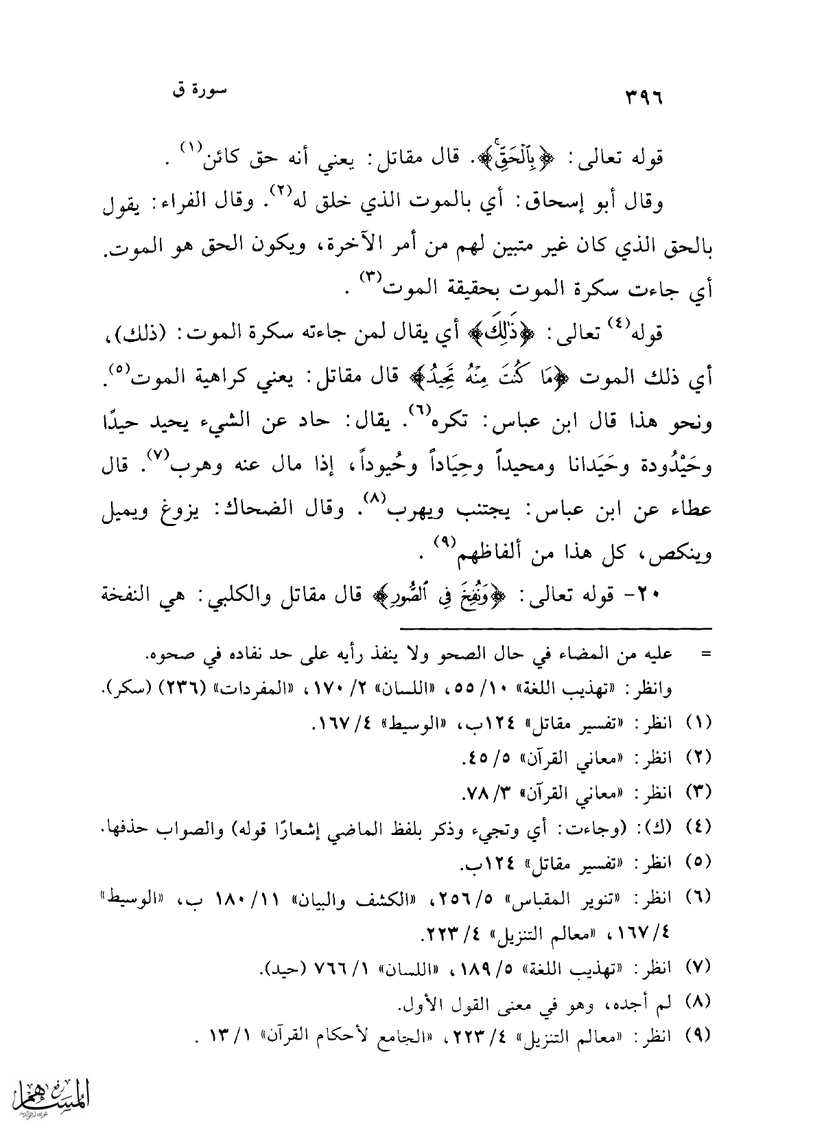 (¬9) انظر: "معالم التنزيل" 4/ 223، "الجامع لأحكام القرآن" 1/ 13.