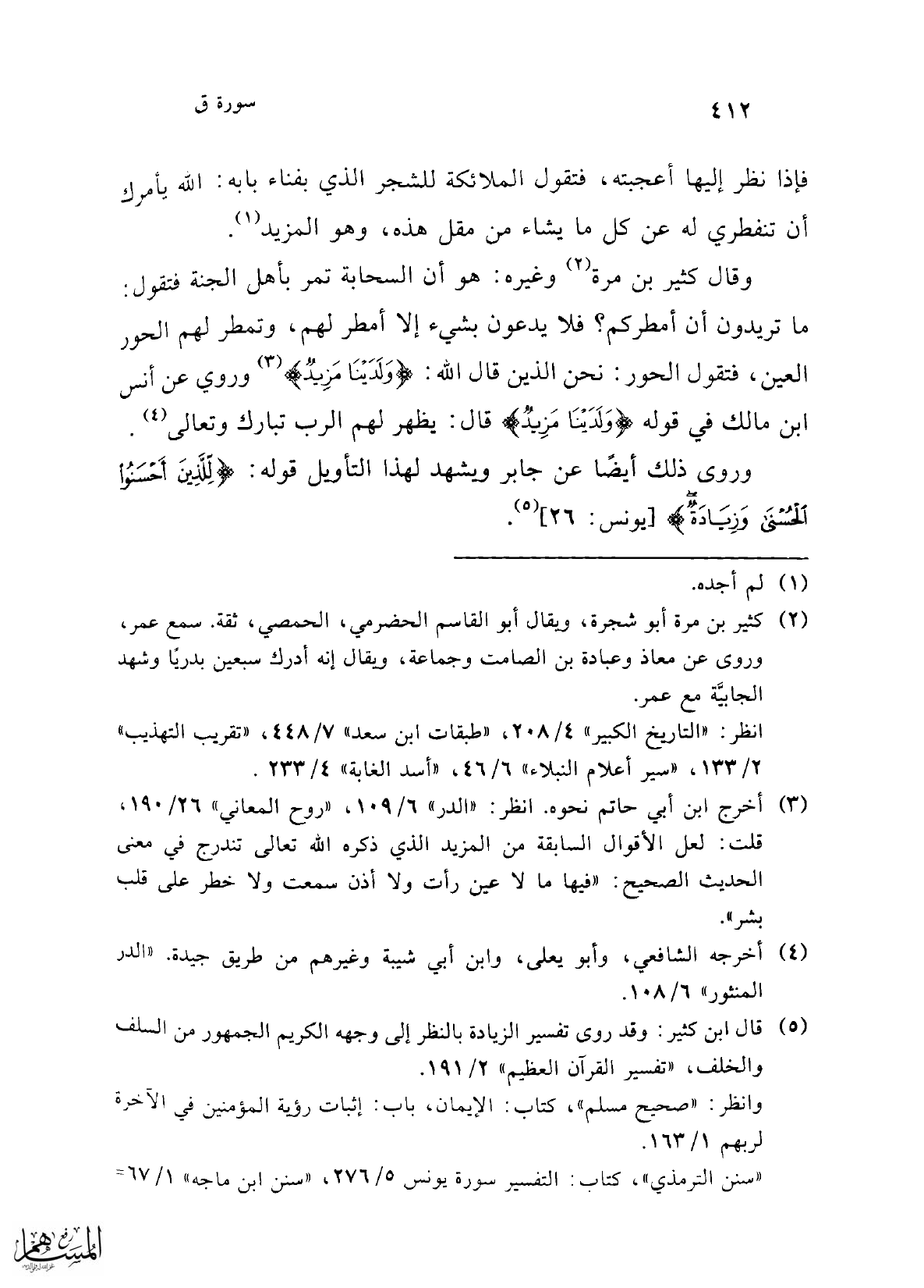 (¬5) قال ابن كثير: وقد روى تفسير الزيادة بالنظر إلى وجهه الكريم الجمهور من السلف والخلف، "تفسير القرآن العظيم" 2/ 191.