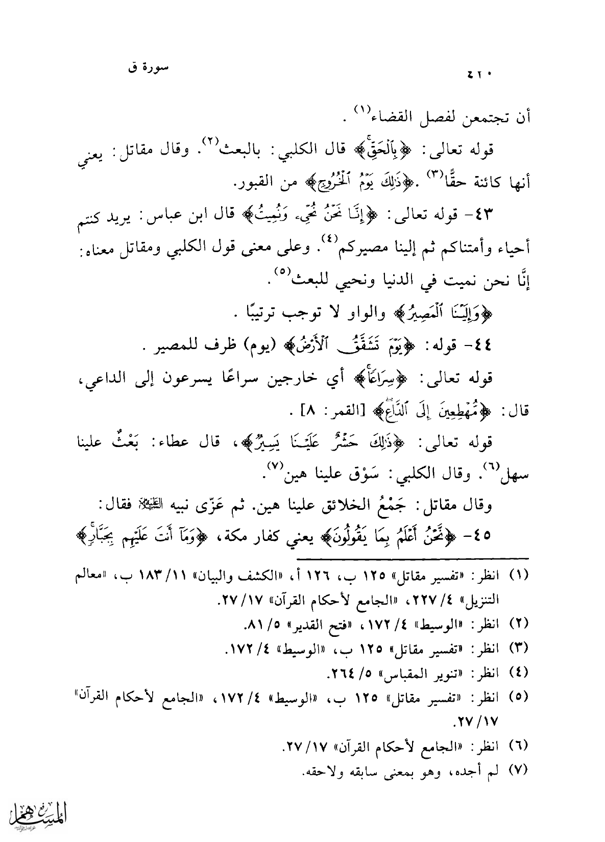 44 - قوله: {يَوْمَ تَشَقَّقُ الْأَرْضُ} (يوم) ظرف للمصير.