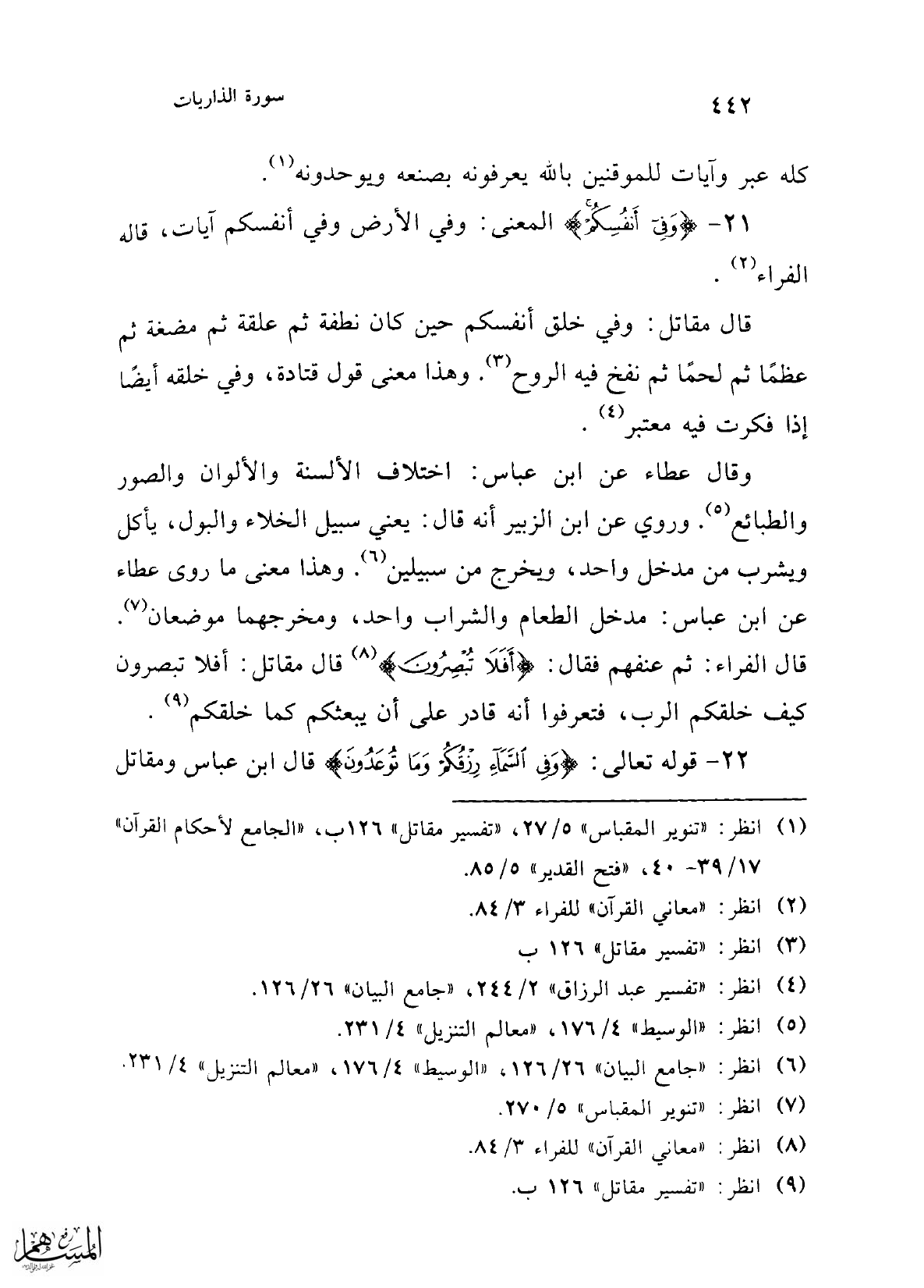 21 - {وَفِي أَنْفُسِكُمْ} المعنى: وفي الأرض وفي أنفسكم آيات، قاله الفراء (¬2).
