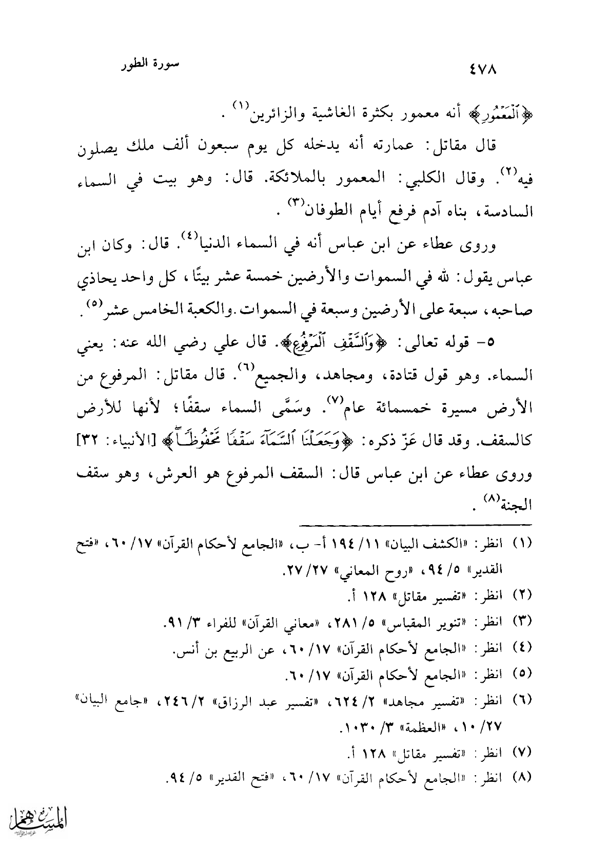 (¬6) انظر: "تفسير مجاهد" 2/ 624، "تفسير عبد الرزاق" 2/ 246، "جامع البيان" 27/ 10، "العظمة" 3/ 1030.