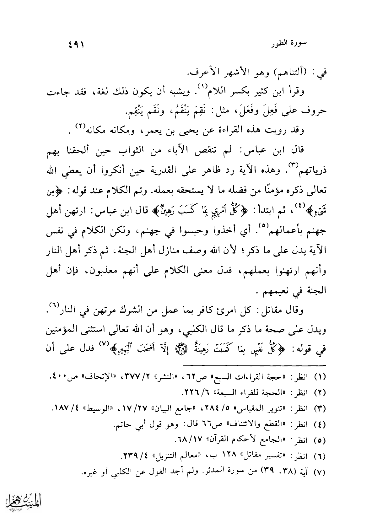 (¬3) انظر: "تنوير المقباس" 5/ 284، "جامع البيان" 27/ 17، "الوسيط" 4/ 187.