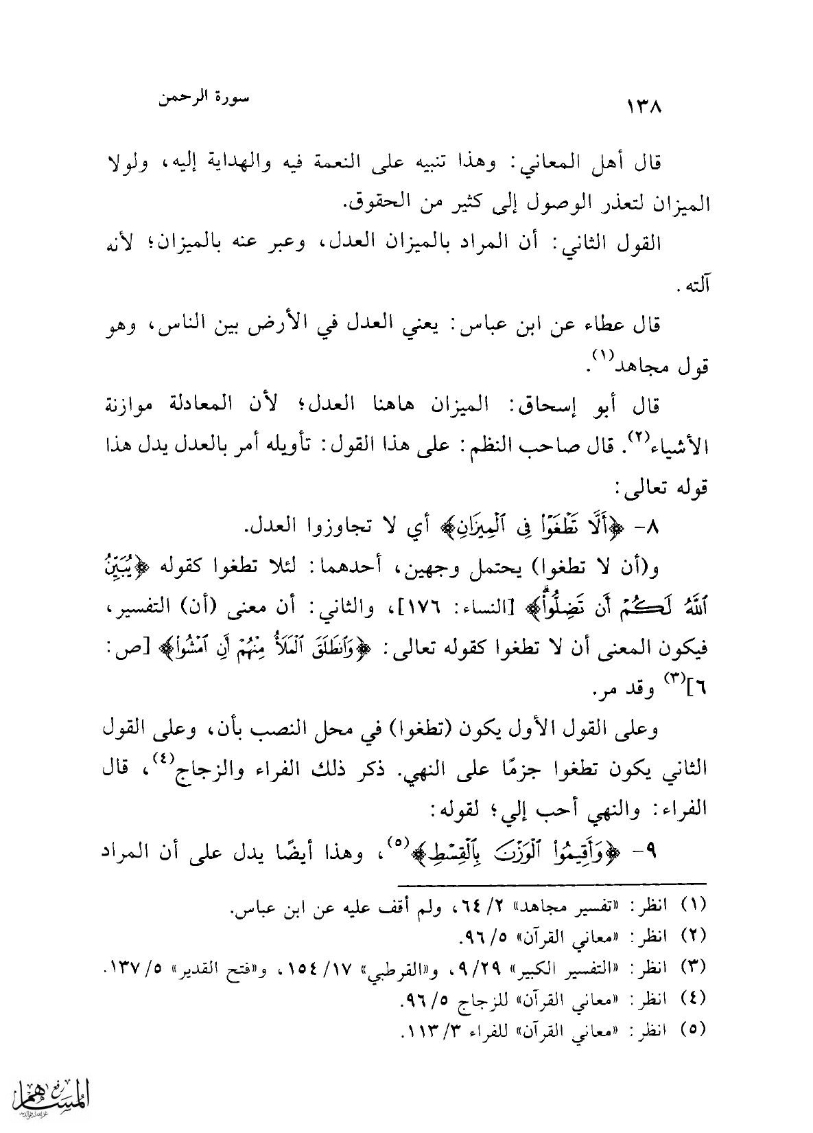 8 - {أَلَّا تَطْغَوْا فِي الْمِيزَانِ} أي لا تجاوزوا العدل.