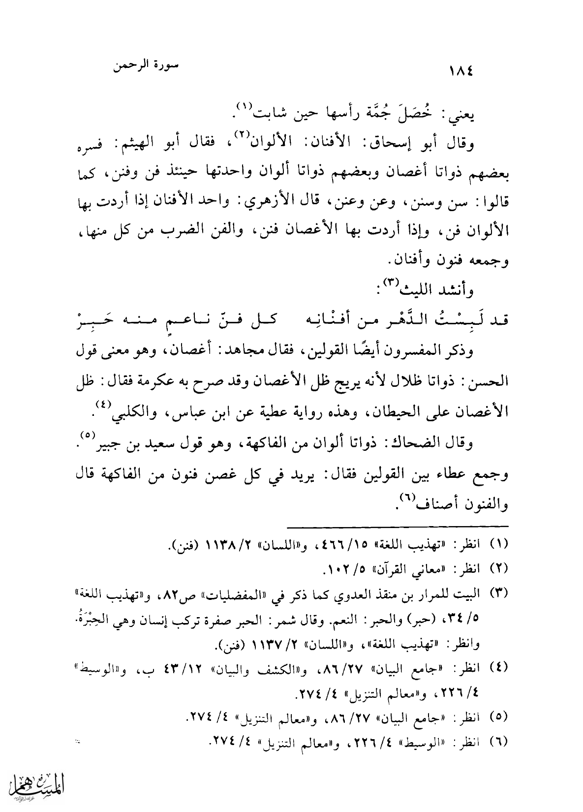 (¬1) انظر: "تهذيب اللغة" 15/ 466، و"اللسان" 2/ 1138 (فنن).