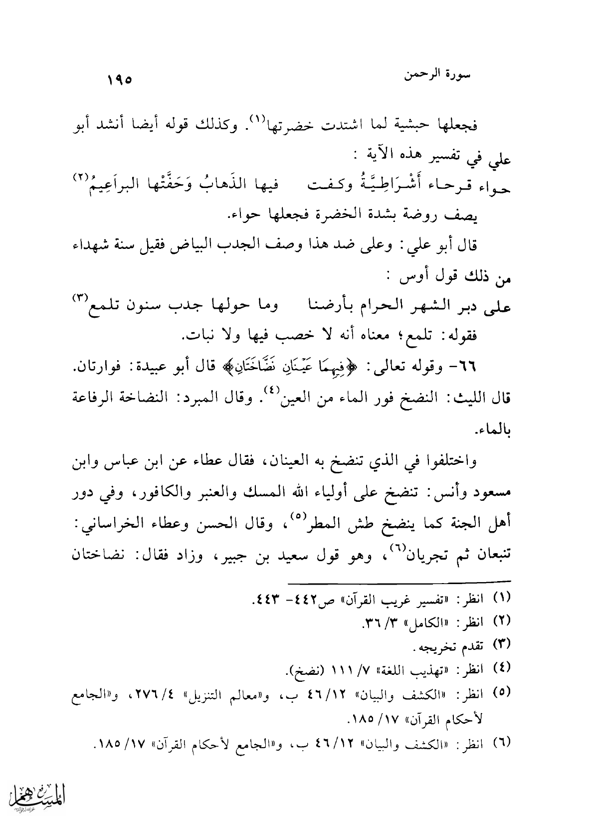 (¬5) انظر: "الكشف والبيان" 12/ 46 ب، و"معالم التنزيل" 4/ 276، و"الجامع لأحكام القرآن" 17/ 185.