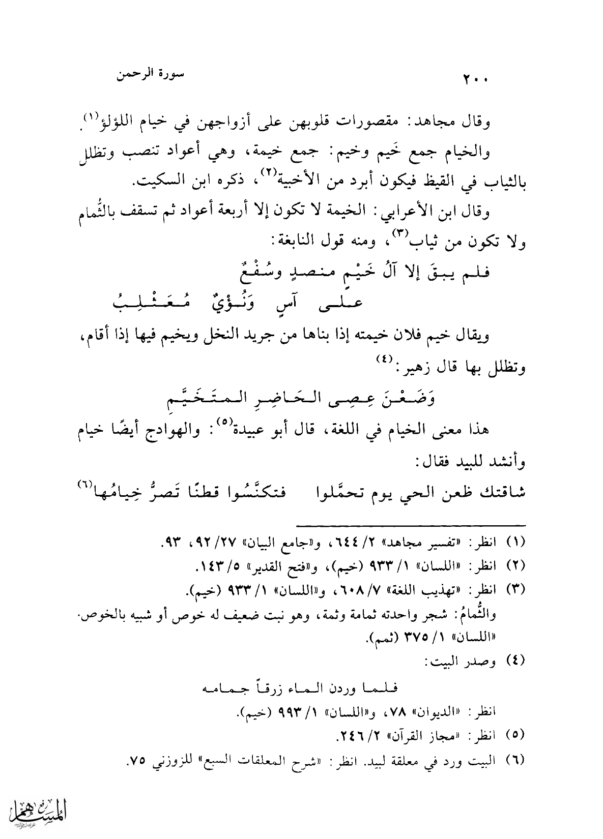 (¬6) البيت ورد في معلقة لبيد. انظر: "شرح المعلقات السبع" للزوزني 75.