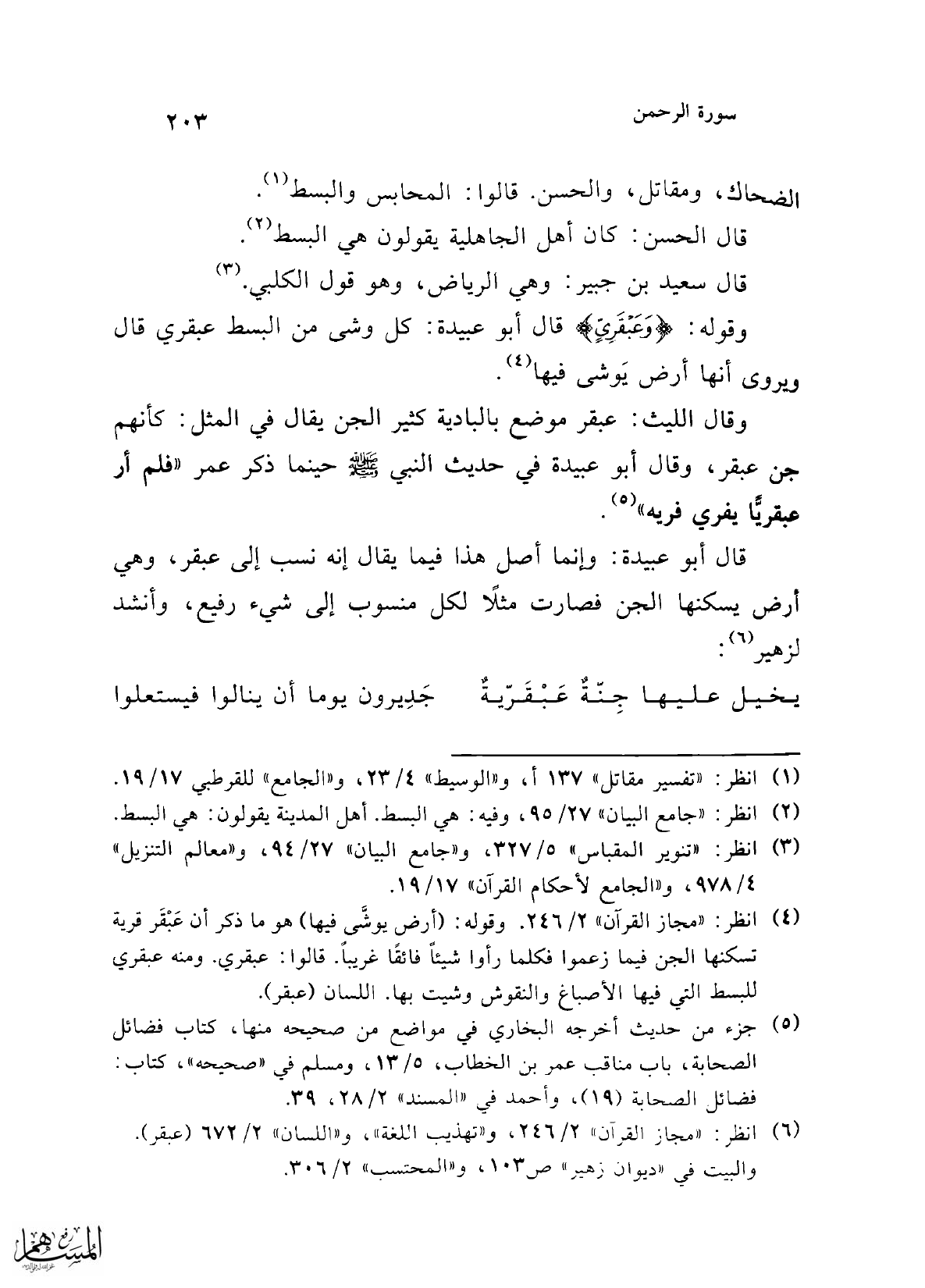 (¬6) انظر: "مجاز القرآن" 2/ 246، و"تهذيب اللغة"، و"اللسان" 2/ 672 (عبقر). والبجت في "ديوان زهير" ص 103، و"المحتسب" 2/ 306.
