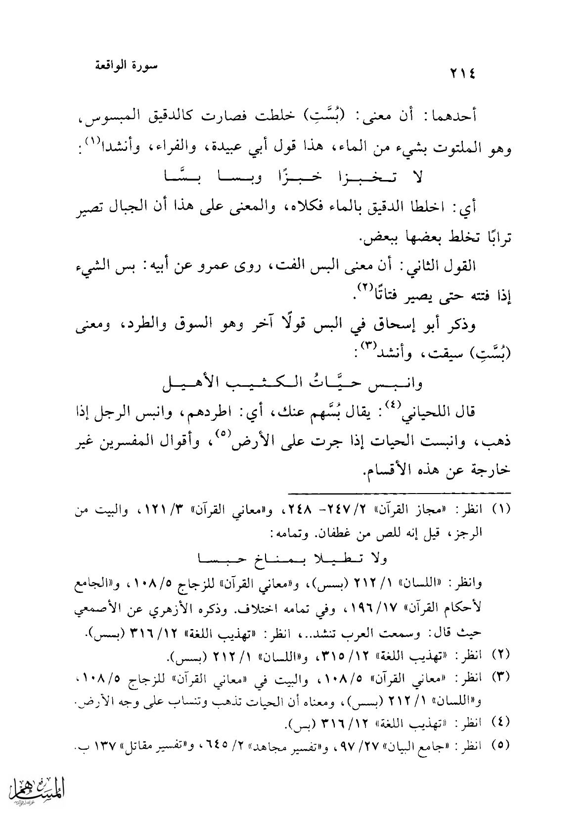 (¬3) انظر: "معاني القرآن" 5/ 108، والبيت في "معاني القرآن" للزجاج 5/ 108. و"اللسان" 1/ 212 (بسس)، ومعناه أن الحيات تذهب وتنساب على وجه الأرض.