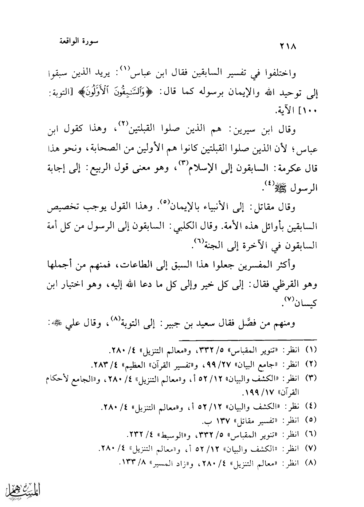 (¬8) انظر: "معالم التنزيل" 4/ 280، و"زاد المسير" 8/ 133.