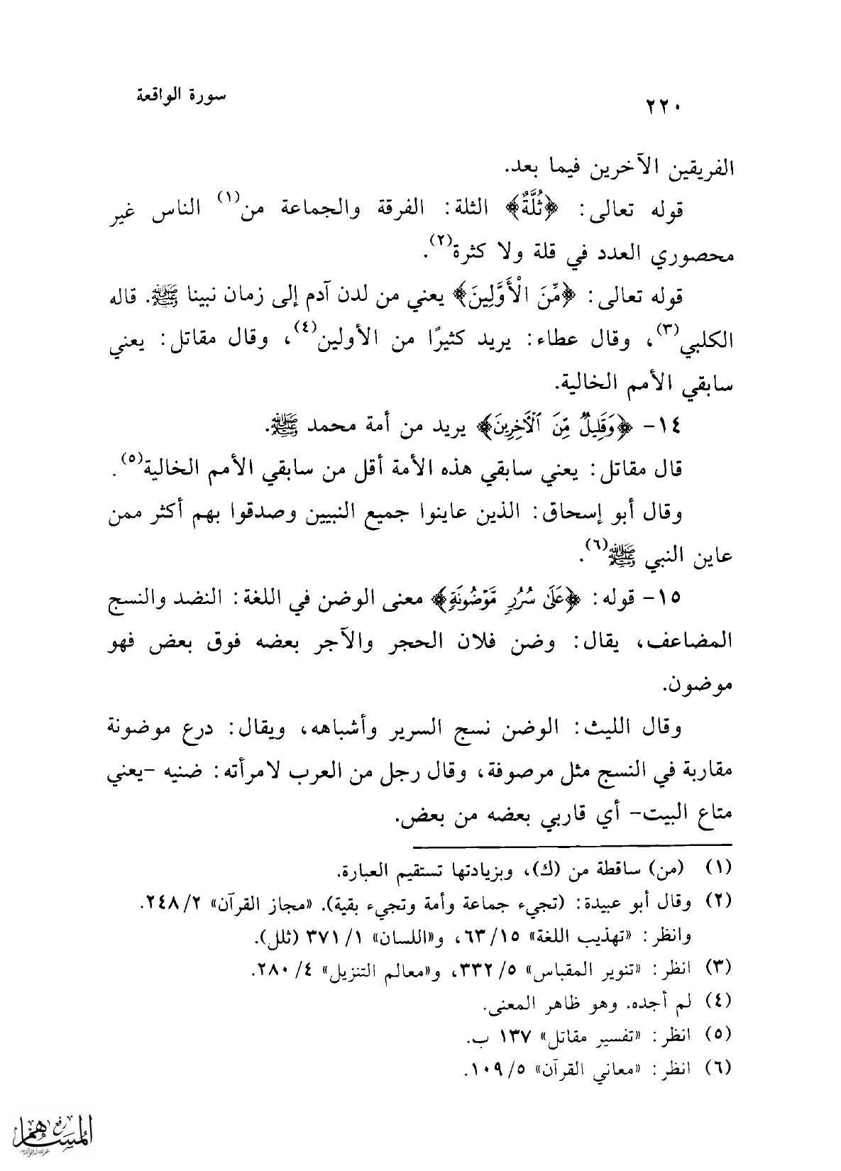 14 - {وَقَلِيلٌ مِنَ الْآخِرِينَ} يريد من أمة محمد -صلى الله عليه وسلم-.
