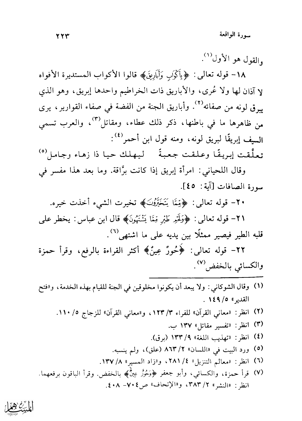 22 - قوله تعالى: {حُورٌ عِينٌ} أكثر القراءة بالرفع، وقرأ حمزة والكسائي بالخفض (¬7).