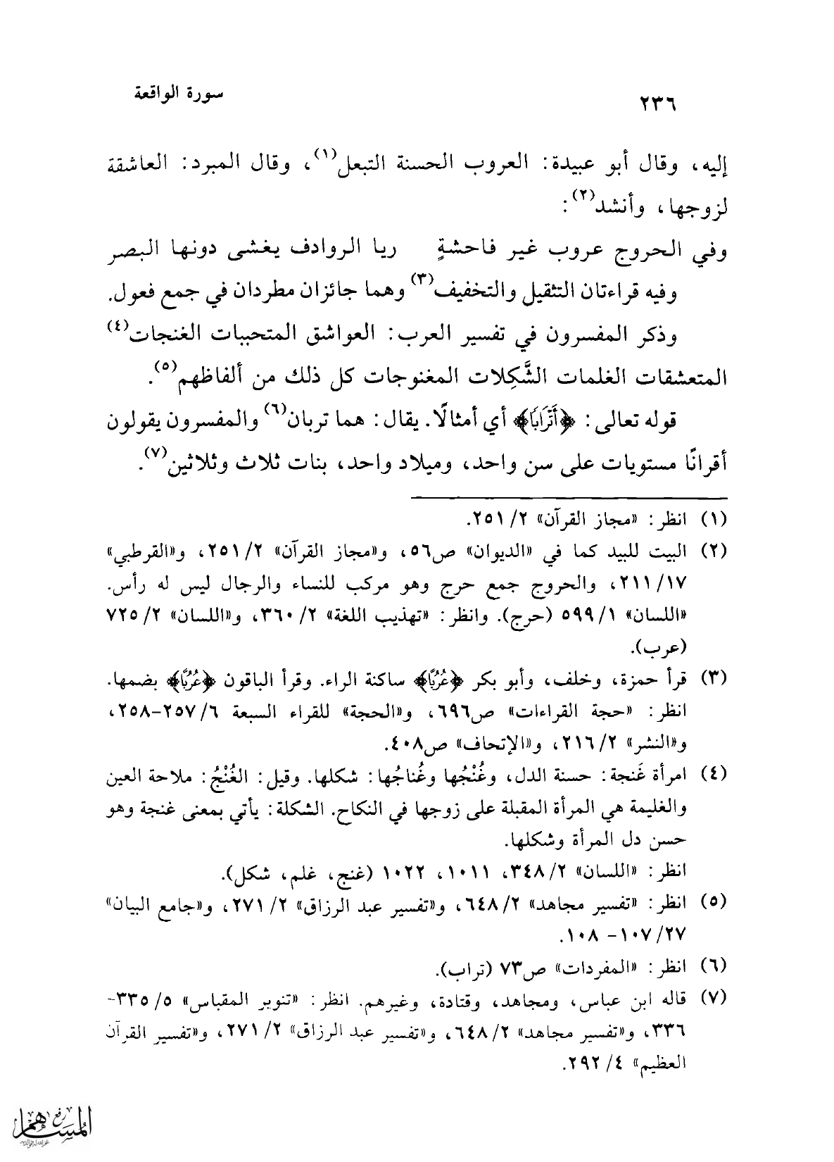 (¬3) قرأ حمزة، وخلف، وأبو بكر {عُرُبًا} ساكنة الراء. وقرأ الباقون {عُرُبًا} بضمها. انظر: "حجة القراءات" ص 696، و"الحجة" للقراء السبعة 6/ 237 - 258، و"النشر" 2/ 216، و"الإتحاف" ص 408.