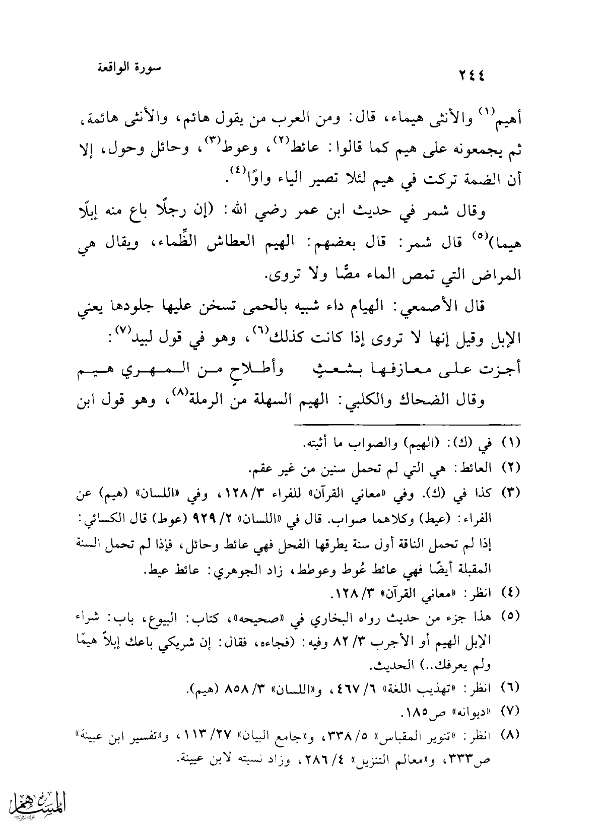 (¬6) انظر: "تهذيب اللغة" 6/ 467، و"اللسان" 3/ 858 (هيم).