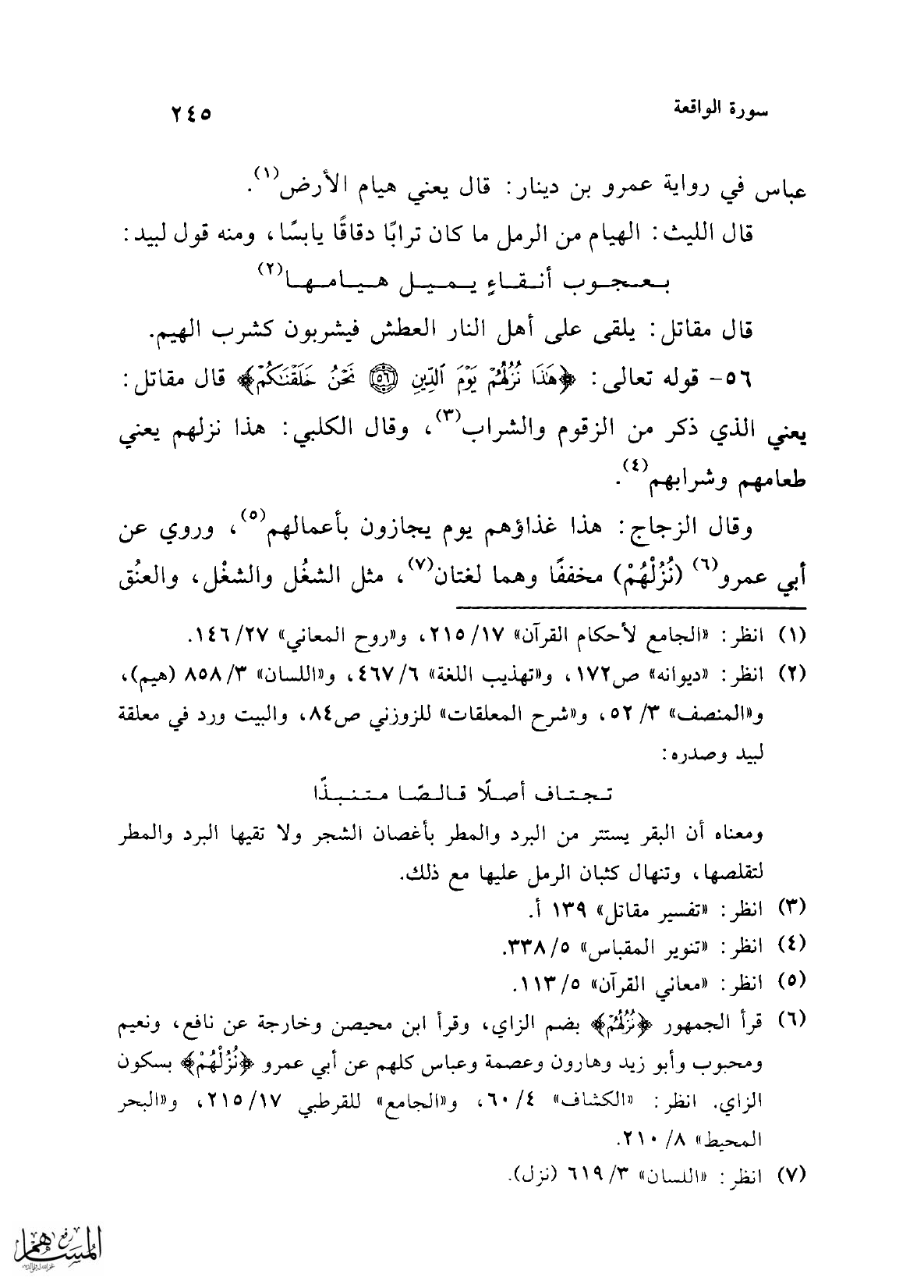 (¬2) انظر: "ديوانه" ص 172، و"تهذيب اللغة" 6/ 467، و"اللسان" 3/ 858 (هيم)، و"المنصف" 3/ 52، و"شرح المعلقات" للزوزني ص 84، والبيت ورد في معلقة لبيد وصدره: