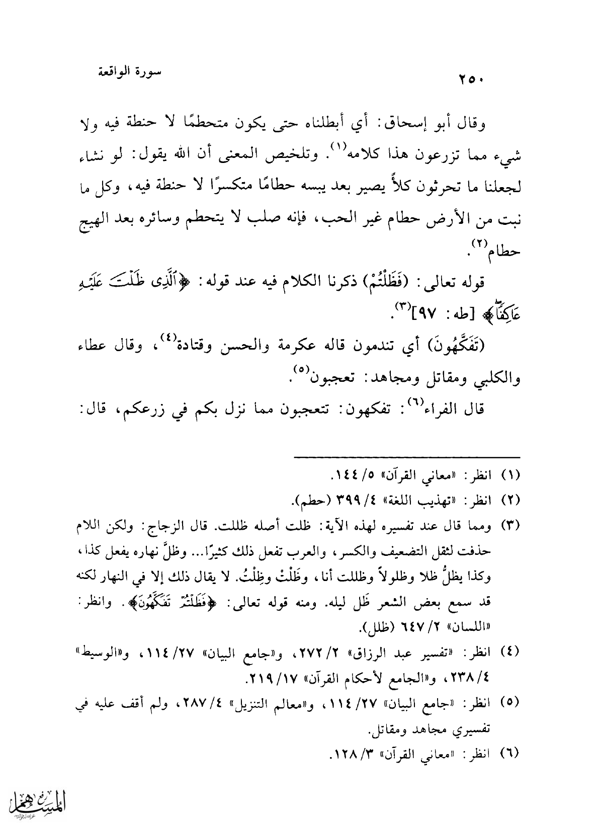قال الفراء (¬6): تفكهون: تتعجبون مما نزل بكم في زرعكم، قال: