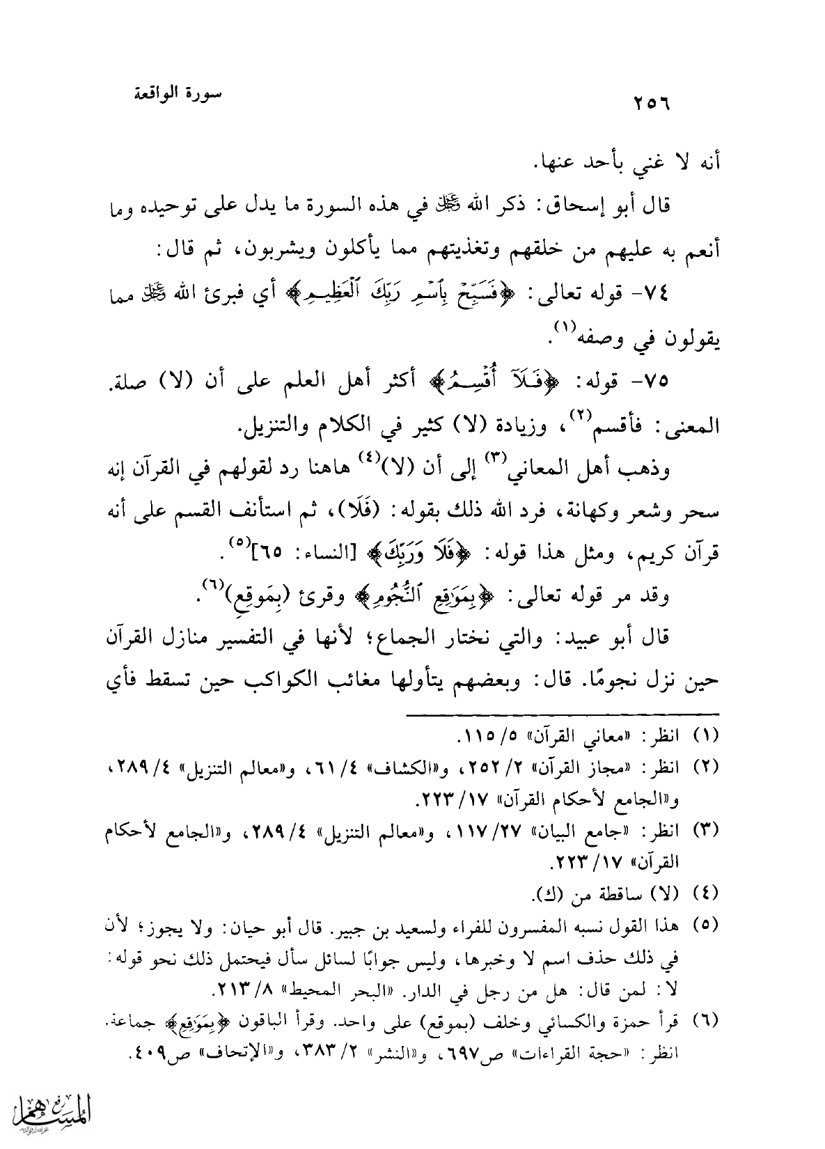 75 - قوله: {فَلَا أُقْسِمُ} أكثر أهل العلم على أن (لا) صلة. المعنى: فأقسم (¬2)، وزيادة (لا) كثير في الكلام والتنزيل.