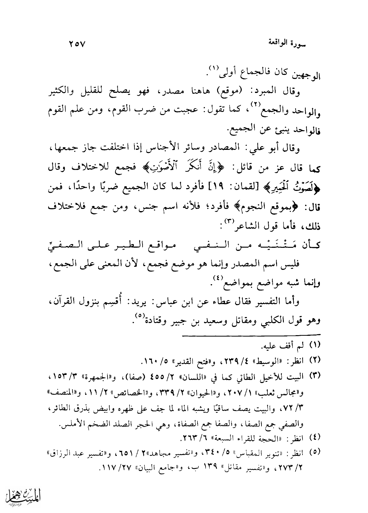 (¬5) انظر: "تنوير المقباس" 5/ 340، و"تفسير مجاهد" 2/ 651، و"تفسير عبد الرزاق" 2/ 273، و"تفسير مقاتل" 139 ب، و"جامع البيان" 27/ 117.