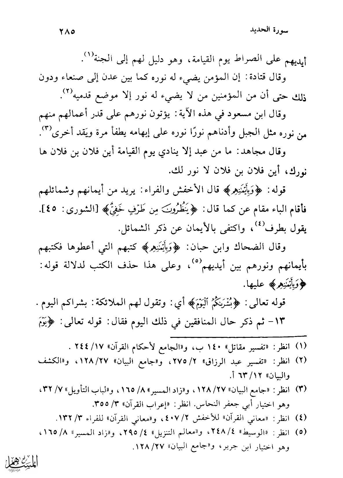 (¬5) انظر: "الوسيط" 4/ 248، و"معالم التنزيل" 4/ 295، و"زاد المسير" 8/ 165، وهو اختيار ابن جرير، و"جامع البيان" 27/ 128.