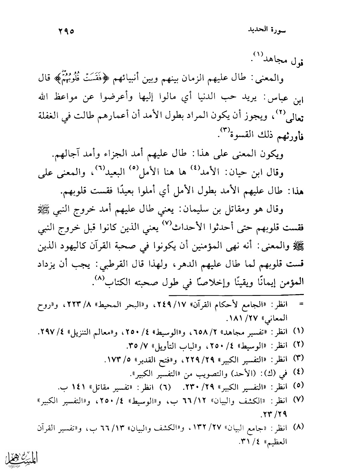 (¬8) انظر: "جامع البيان" 27/ 132, و"الكشف والبيان" 13/ 66 ب، و"تفسير القرآن العظيم" 4/ 31.