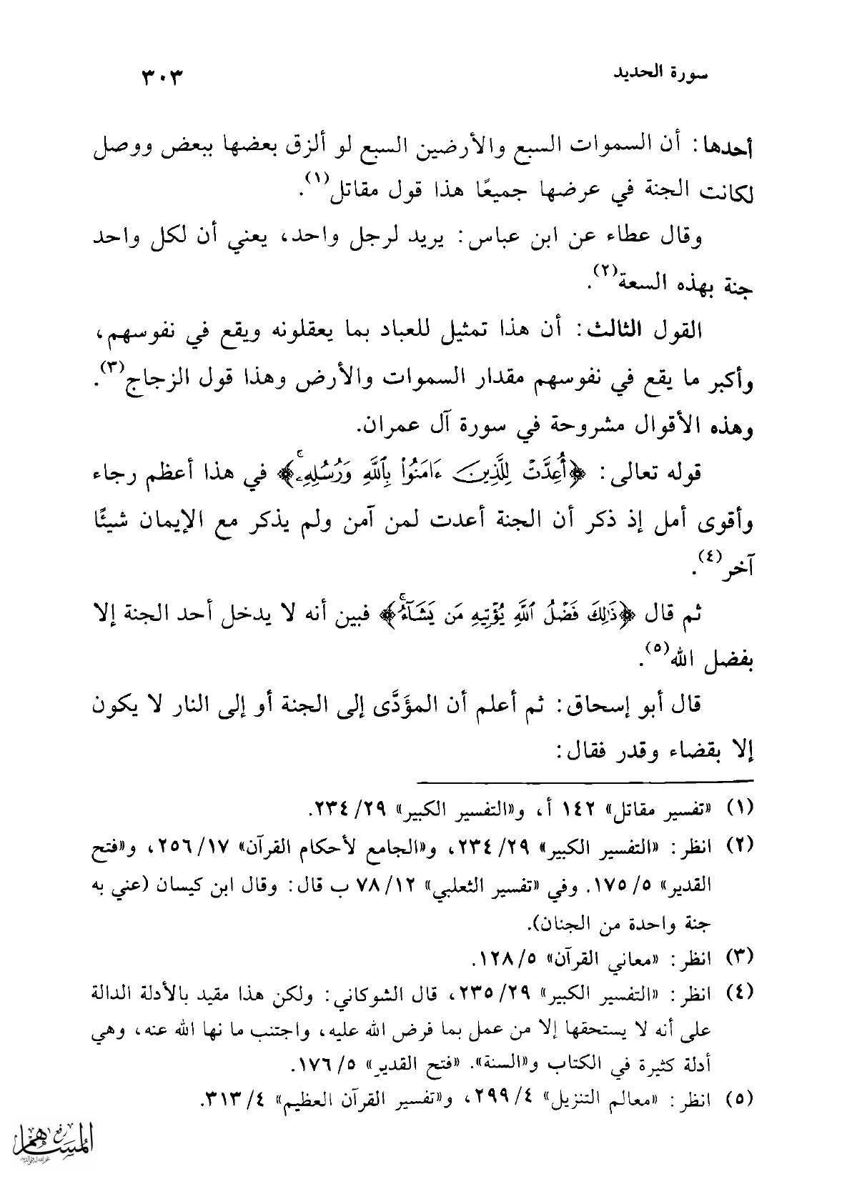 (¬4) انظر: "التفسير الكبير" 29/ 235، قال الشوكاني: ولكن هذا مقيد بالأدلة الدالة على أنه لا يستحقها إلا من عمل بما فرض الله عليه، واجتنب ما نها الله عنه، وهي أدلة كثيرة في الكتاب و"السنة". "فتح القدير" 5/ 176.