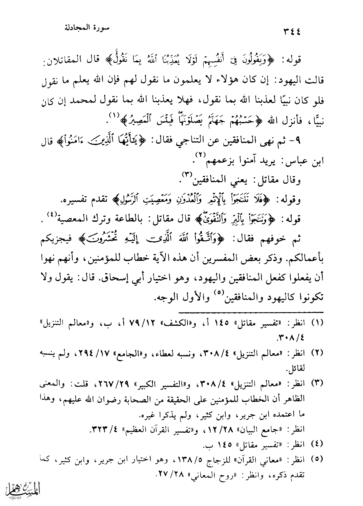 9 - ثم نهى المنافقين عن التناجي فقال: {يَا أَيُّهَا الَّذِينَ آمَنُوا} قال ابن عباس: يريد آمنوا بزعمهم (¬2).