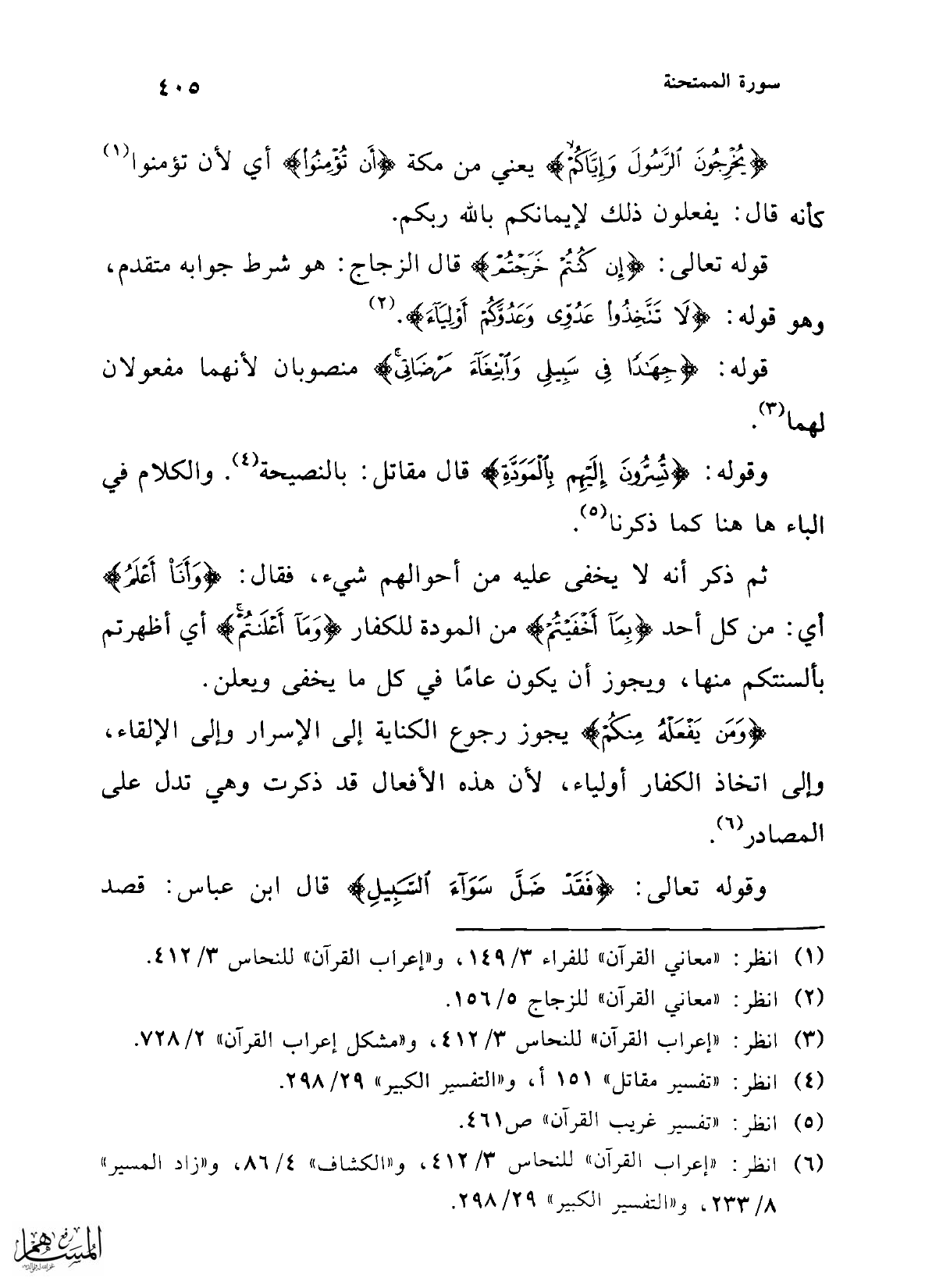 (¬6) انظر: "إعراب القرآن" للنحاس 3/ 412، و"الكشاف" 4/ 86، و"زاد المسير" 8/ 233، و"التفسير الكبير" 29/ 298.