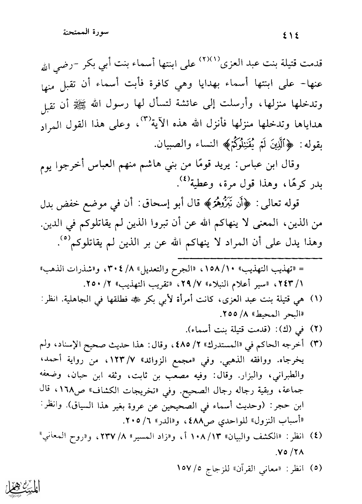 (¬1) هي قتيلة بنت عبد العزى، كانت امرأة لأبي بكر -رضي الله عنه- فطلقها في الجاهلية. انظر: "البحر المحيط" 8/ 255.