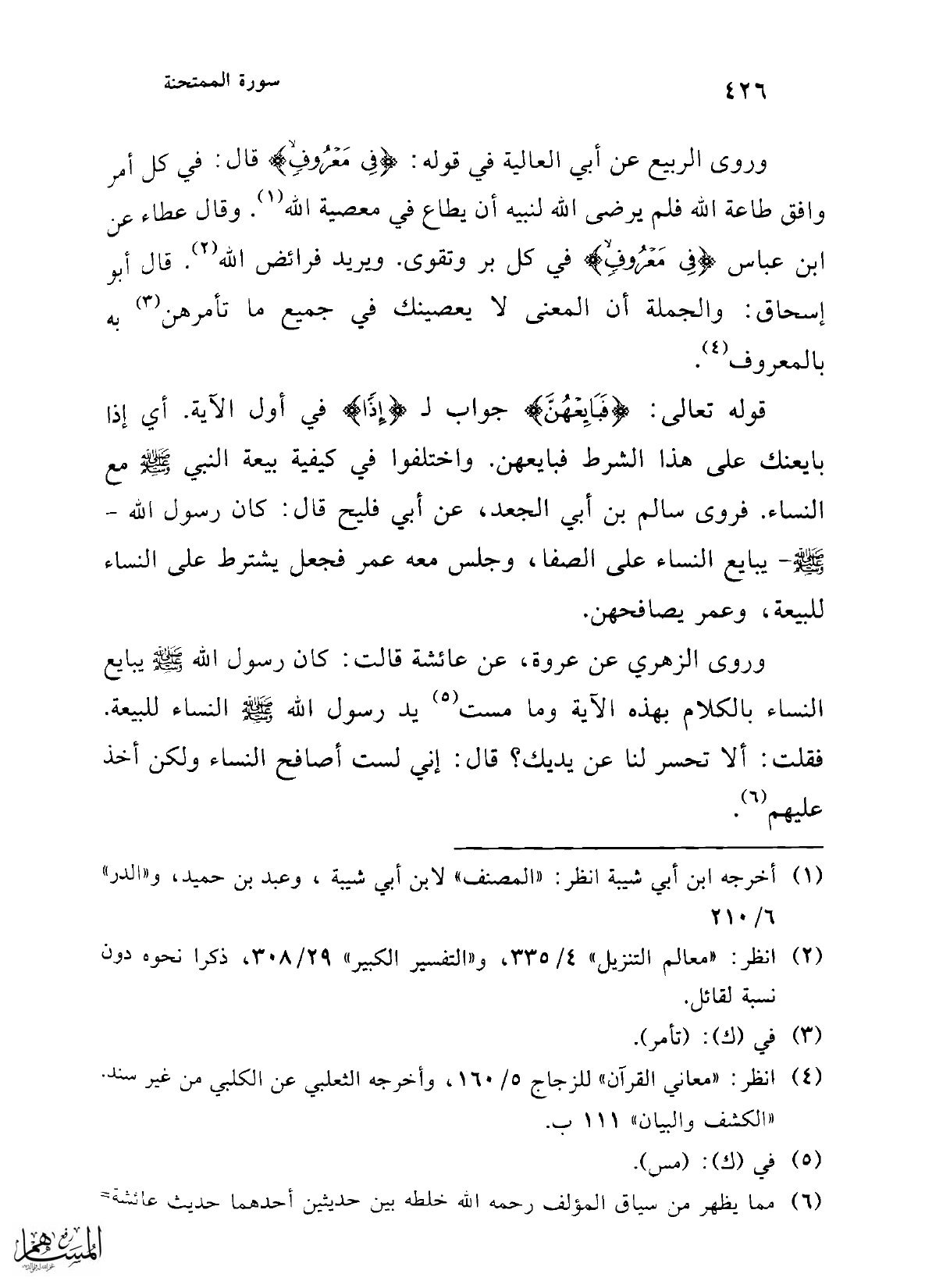 وروى الربيع عن أبي العالية في قوله: {فِي مَعْرُوفٍ} قال: في كل أمر وافق طاعة الله فلم يرضي الله لنبيه أن يطاع في معصية الله (¬1). وقال عطاء عن ابن عباس {فِي مَعْرُوفٍ} في كل بر وتقوى. ويريد فرائض الله (¬2). وقال أبو إسحاق: والجملة أن المعنى لا يعصينك في جميع ما تأمرهن (¬3) به بالمعروف (¬4).