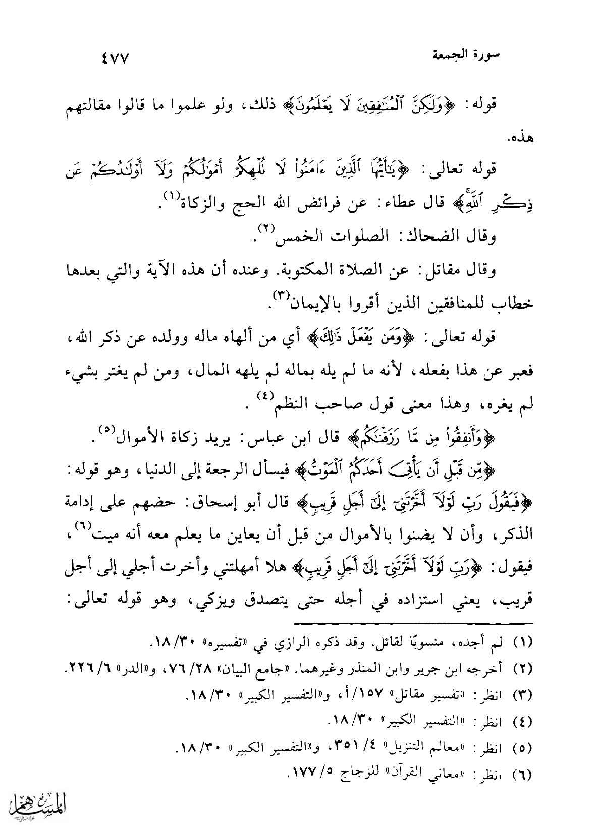 (¬5) انظر: "معالم التنزيل" 4/ 351، و"التفسير الكبير" 30/ 18.