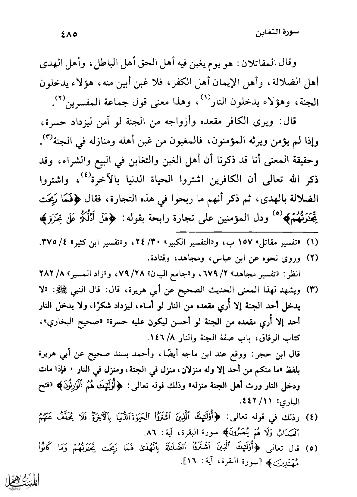 (¬5) قال تعالى {أُولَئِكَ الَّذِينَ اشْتَرَوُا الضَّلَالَةَ بِالْهُدَى فَمَا رَبِحَتْ تِجَارَتُهُمْ وَمَا كَانُوا مُهْتَدِين} [سورة البقرة، آية: 16].