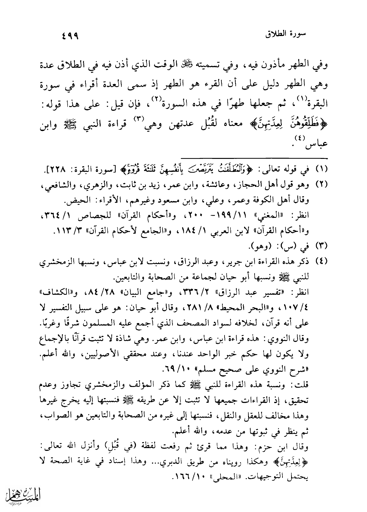 وقال ابن حزم: وهذا مما قرئ ثم رفعت لفظة (في قُبُلِ) وأنزل الله تعالى: {لِعِدَّتِهِنَّ} وهكذا رويناه من طريق الدبري ... وهذا إسناد في غاية الصحة لا يحتمل التوجيهات. "المحلى" 10/ 166.