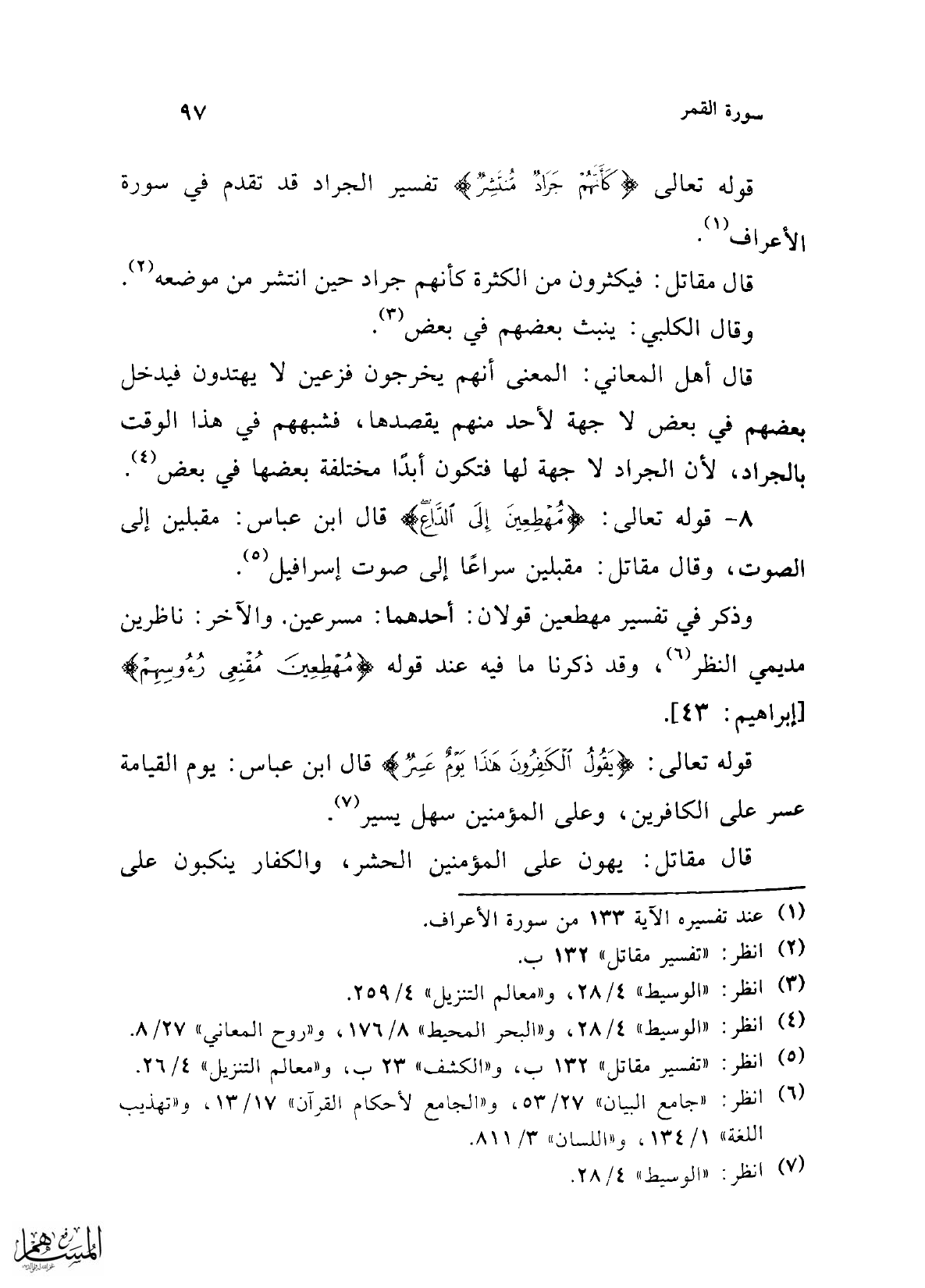 (¬1) عند تفسيره الآية 133 من سورة الأعراف.