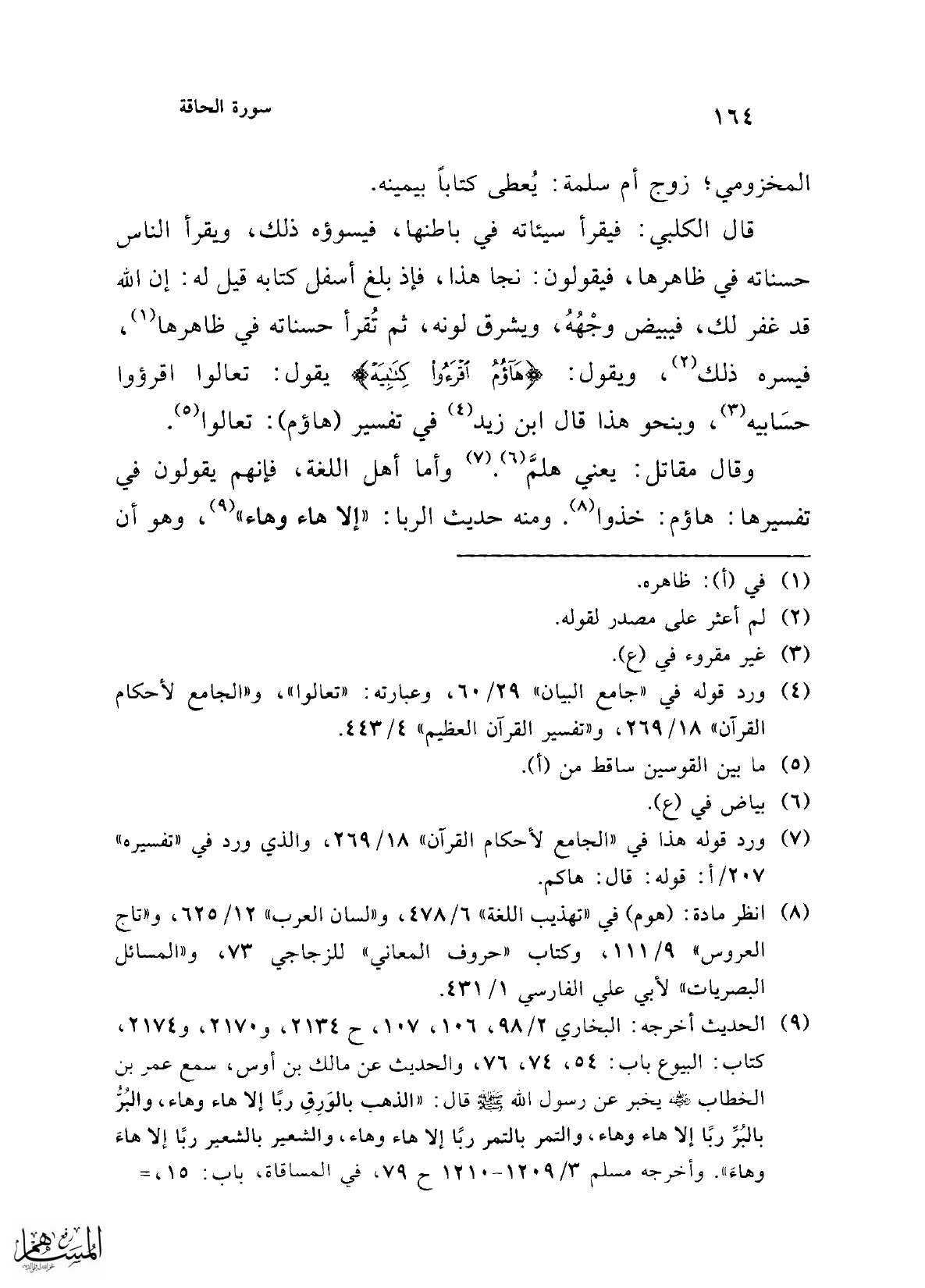 (¬7) لم أعثر على قائله، كما أني لم أعتر عليه في النوادر لأبي زيد، ولا في كتابه الهمز، وهو مظنته، وقد ورد البيت في تهذيب اللغة. المرجع السابق. وناقل ابن منظور كلام أبي زيد مع البيت في اللسان، مادة: (ها).