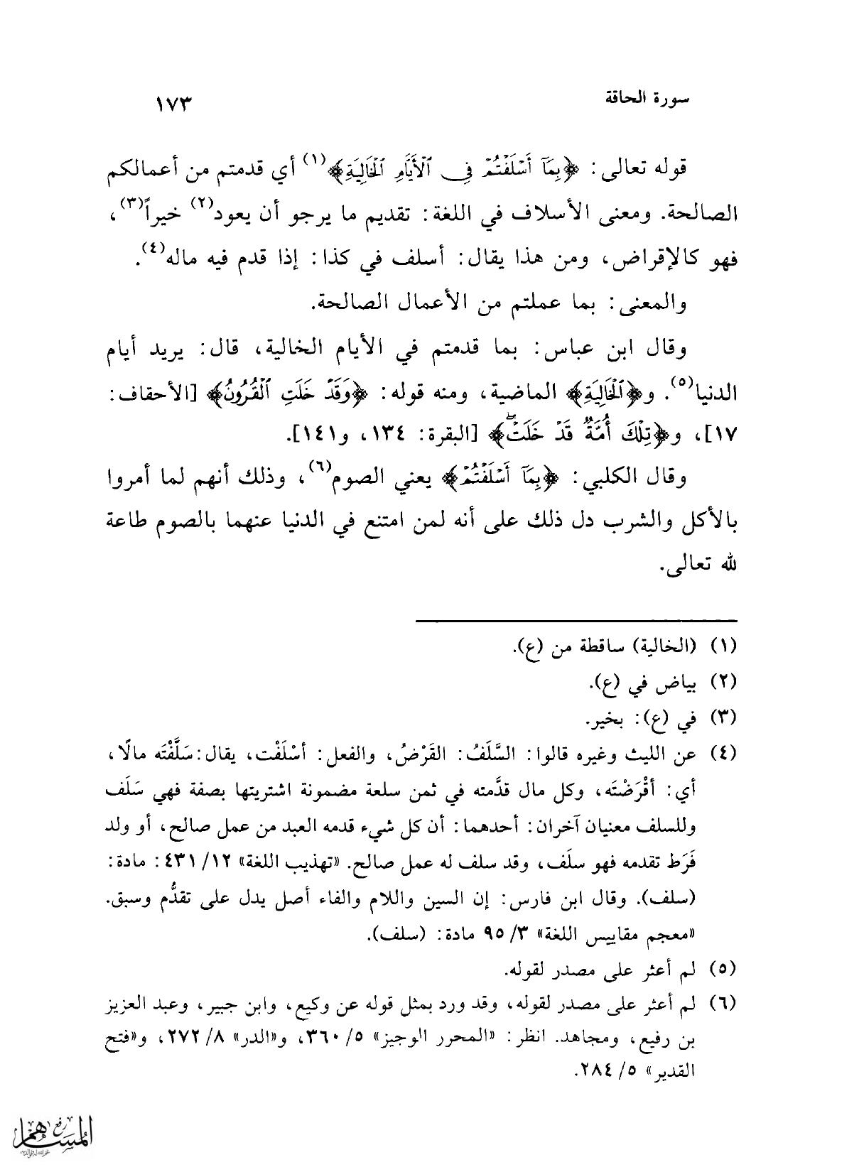 (¬5) "الكشف والبيان" 12/ 178/ ب، و"معالم التنزيل" 4/ 389، و"التفسير الكبير" 3/ 113، و"لباب التأويل" 4/ 305، و"الدر المنثور" 8/ 273، وعزاه إلى عبد بن حميد، و"فتح القدير" 5/ 284 - 285.