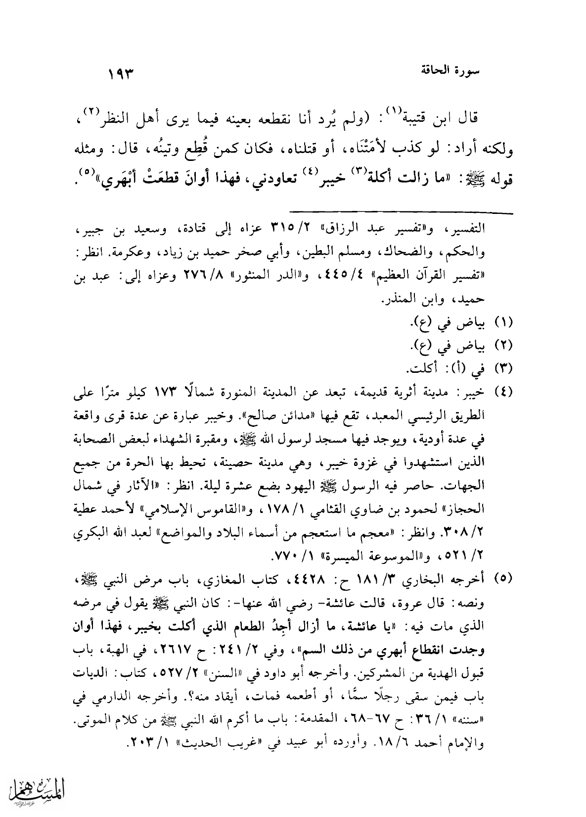 (¬2) لم أعثر على مصدر قوله. وقد ورد مثله من غير عزو في "جامع البيان" 29/ 68، و"الكشف والبيان" 12/ 180/ أ، و"معالم التنزيل" 4/ 391، و"زاد المسير" 8/ 87، و"لباب التأويل" 4/ 357. ومعنى الحسرة لغة: قال الأزهري: "والحسرة أشد الندم حتى يبقى النادم كالحسير من الدواب الذي لا منفعة فيه". "تهذيب اللغة" 4/ 288 (حسر). وقال ابن فارس: الحاء والسين والراء: أصل واحد، وهو كشف الشيء، ومن الباب: الحسرة: التلهف على الشيء الفائت". "معجم مقاييس اللغة" 2/ 61 - 62: (حسر). قال ابن عاشور: "والحسرة: الندم الشديد المتكرر على شيء فائت مرغوب فيه، ويقال لها: التلهف، اشتقت من الحَسْر، وهو "الكشف"؛ لأن سببها ينكشف لصاحبها بعد فوات إدراكه، ولا يزال يعاوده". "التحرير والتنوير" 29/ 149. وما ذكر عن ابن عباس هو أحد الوجهين في عود الضمير على "من"، فابن عباس حملة على القرآن.