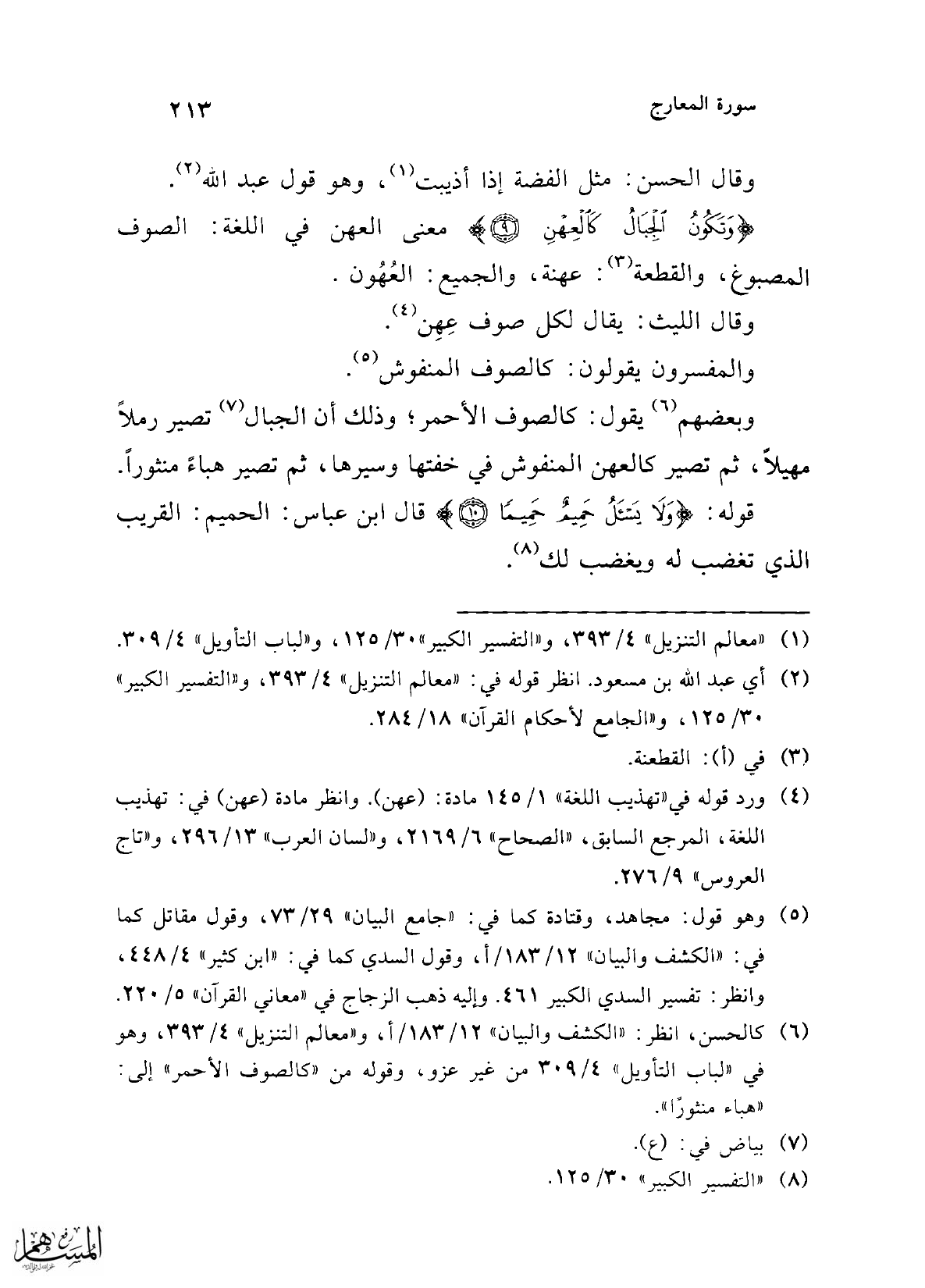 (¬1) ما بين القوسين نقله الإمام الواحدي عن الفارسي باختصار. انظر: "الحجة" 6/ 320 - 321.