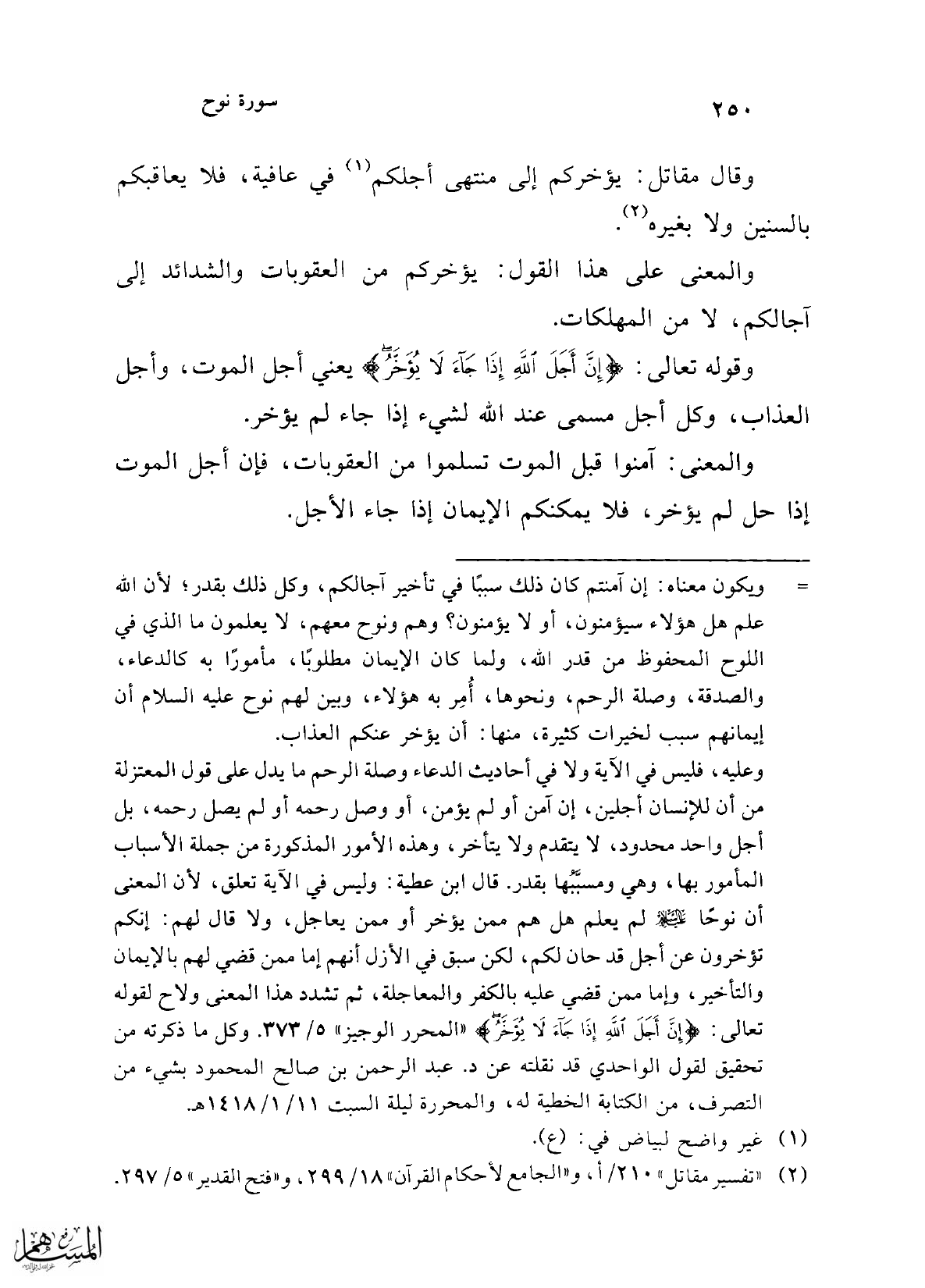 (¬6) "جامع البيان" 29/ 93، و"النكت والعيون" 6/ 101، و"الجامع لأحكام القرآن" 18/ 301، و"الدر المنثور" 8/ 290، وعزاه إلى عبد بن حميد وابن المنذر.