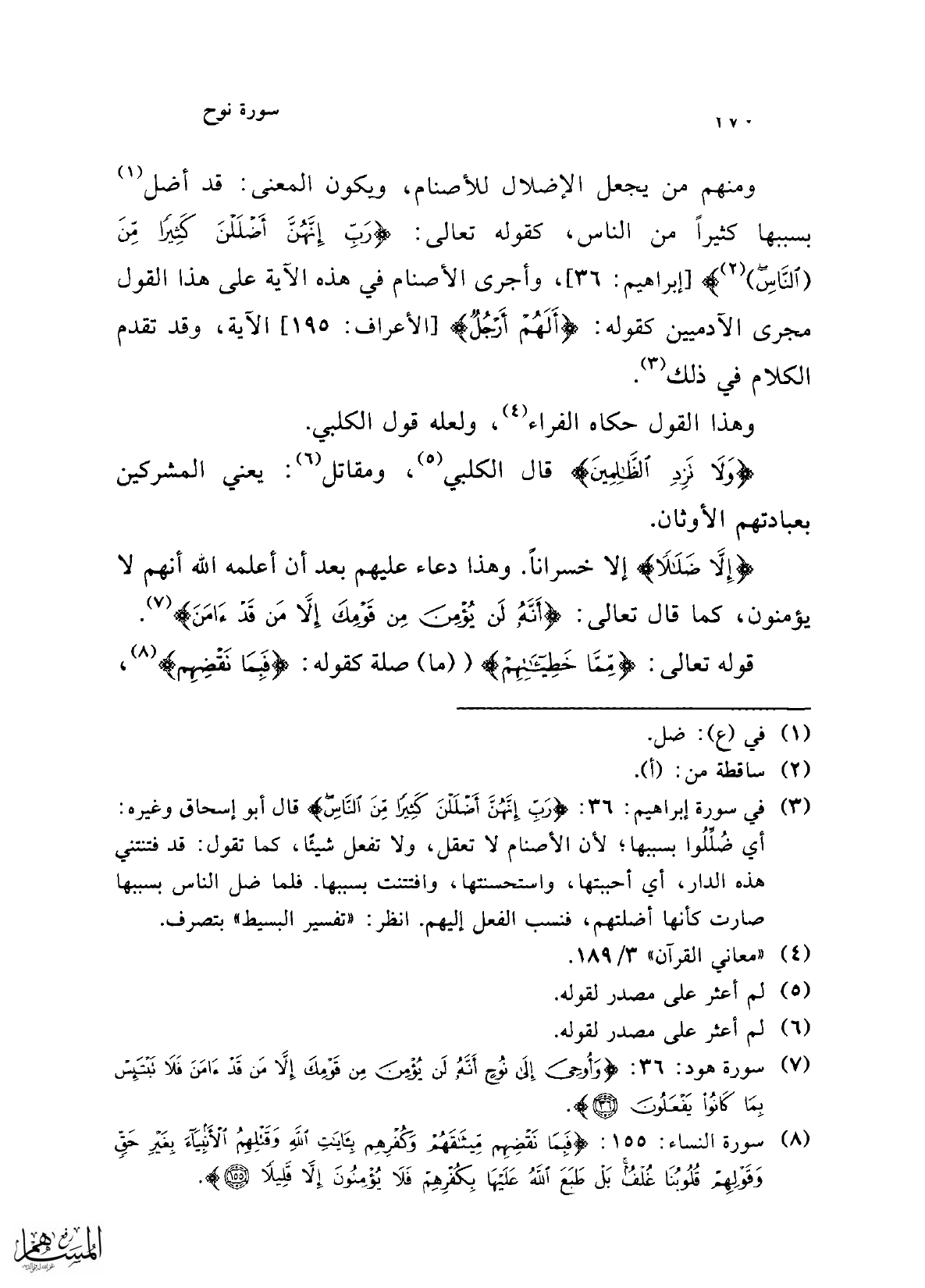 (¬2) ما بين القوسين نقله الإمام الواحدي عن صاحب الحجة بتصرف، وبإضافة قولي ابن عباس ومقاتل. انظر: الحجة: 6/ 328.