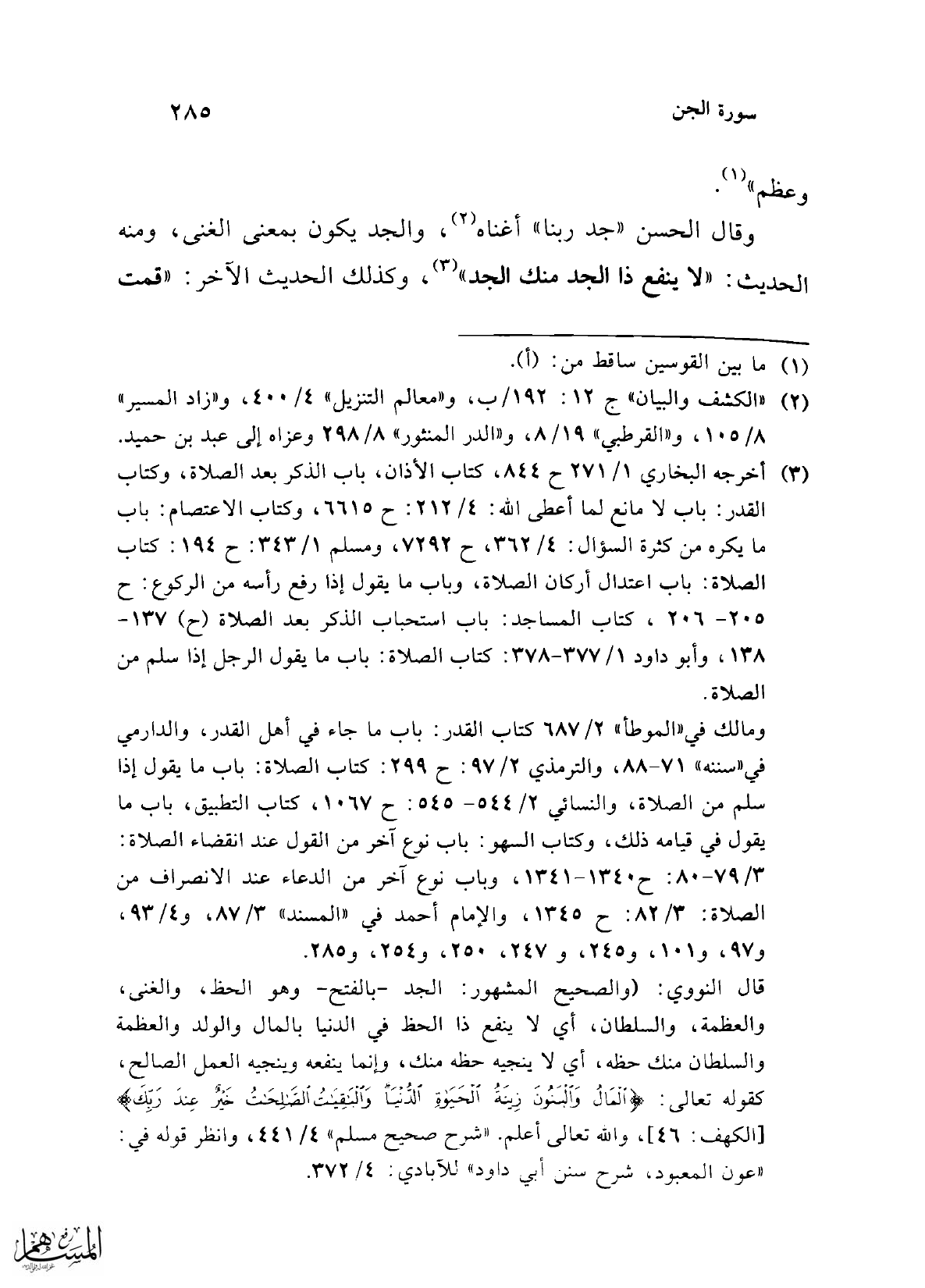 فأما ما روي عن ابن عباس أنه قال: لو علمت الجن أن في الإنس جدًّا (¬6) ما قالت: "تعالى جد ربنا" (¬7)، فهذا محمول على أن هذا اللفظ مُوهم، وكان (¬8) الأولى بهم أن يجتنبوا إطلاقه في وصف الله، وإن (كان) (¬9) بمعنى جائز في وصفه.