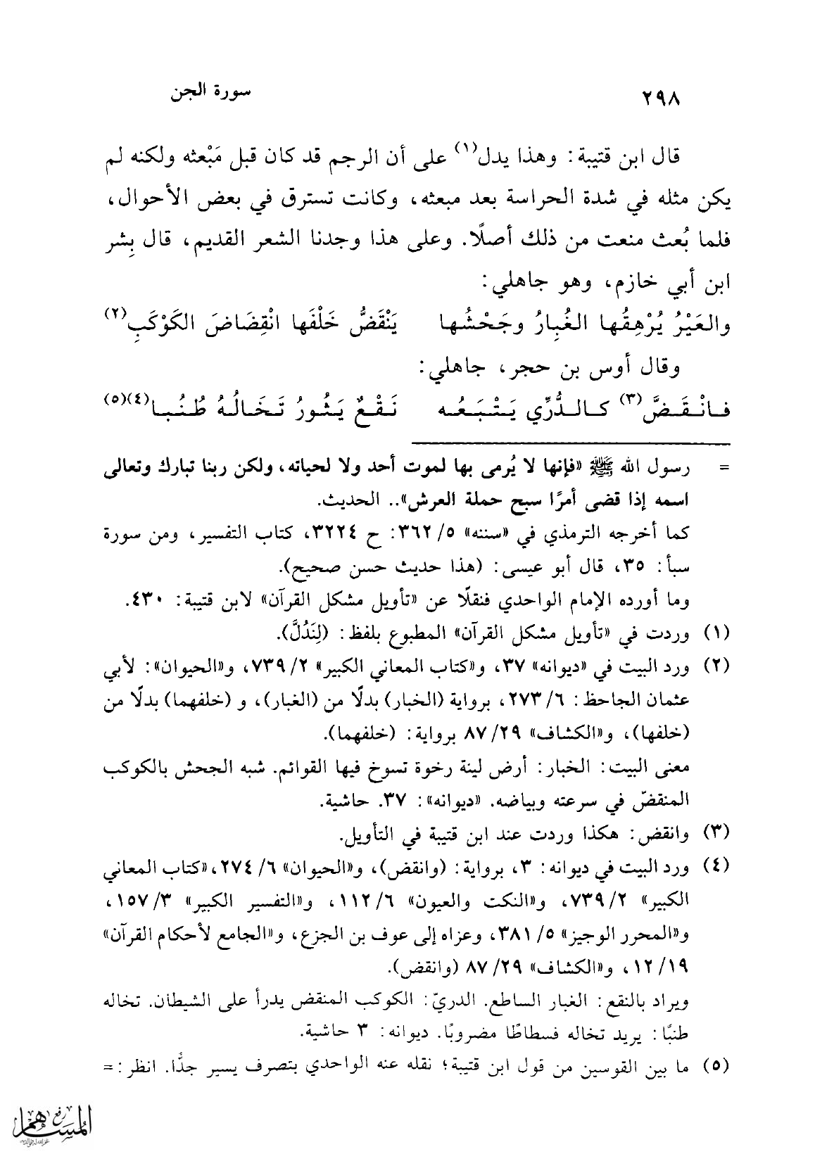 (¬4) "جامع البيان" 29/ 112، و"معالم التنزيل" 4/ 403، و"تفسير القرآن العظيم" 4/ 459، و"الدر المنثور" 8/ 304 وعزاه إلى عبد بن حميد.