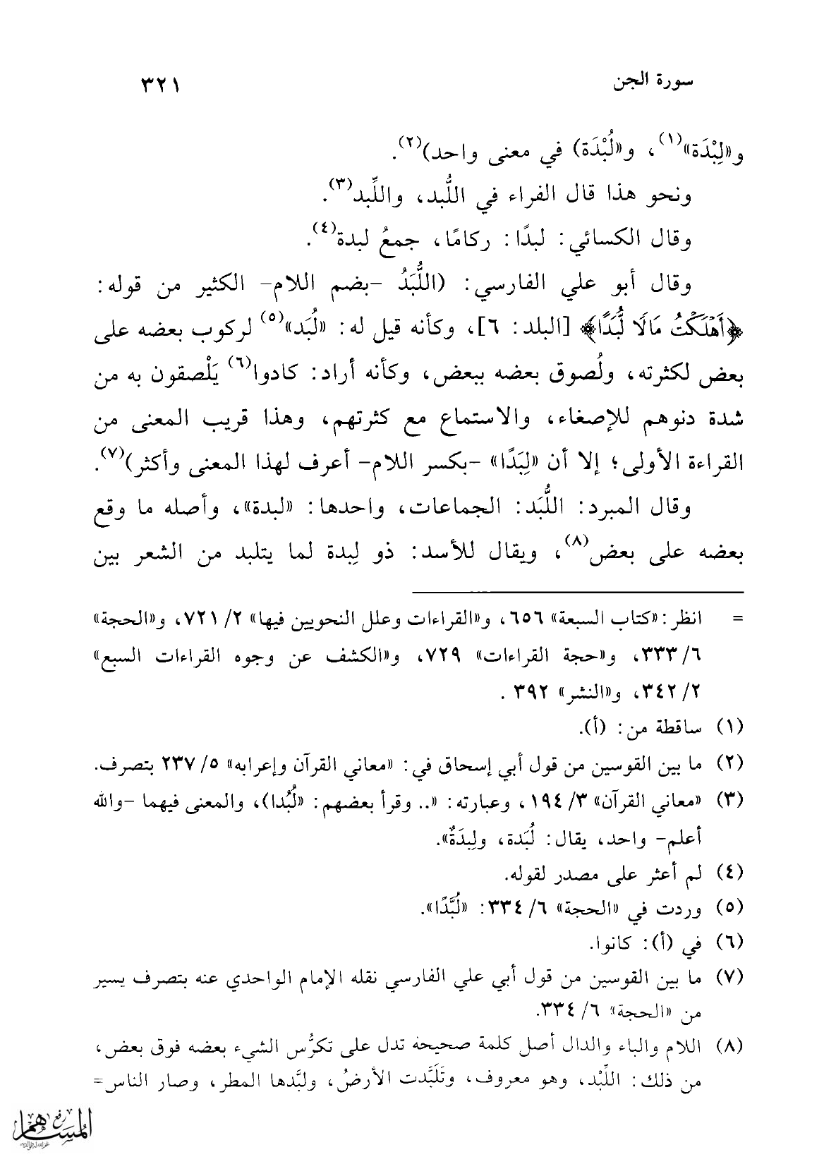 الثاني: قول قتادة، قال: لما قام عبد الله بالدعوة تلبدت (¬2) الإنس والجن، وتظاهروا عليه ليبطلوا الحق الذي جاء به، ويطفئوا نور الله، فأبى الله إلا أن ينصره (¬3) ويظهره على من ناوأه (¬4) (¬5)، (وهذا قول الحسن (¬6)،