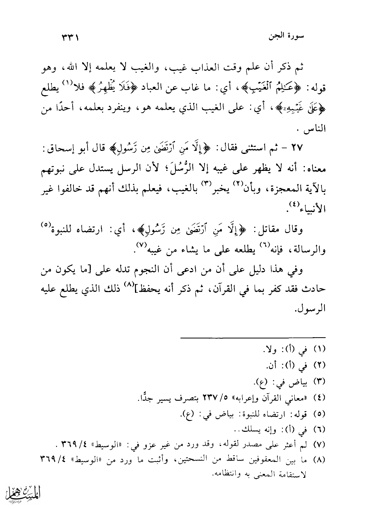 (¬3) "جامع البيان" 29/ 122، و"الجامع لأحكام القرآن" 19/ 28، و"البحر المحيط" 8/ 355، و"الدر المنثور" 8/ 309 - 310 وعزاه إلى عبد بن حميد، وابن جرير.