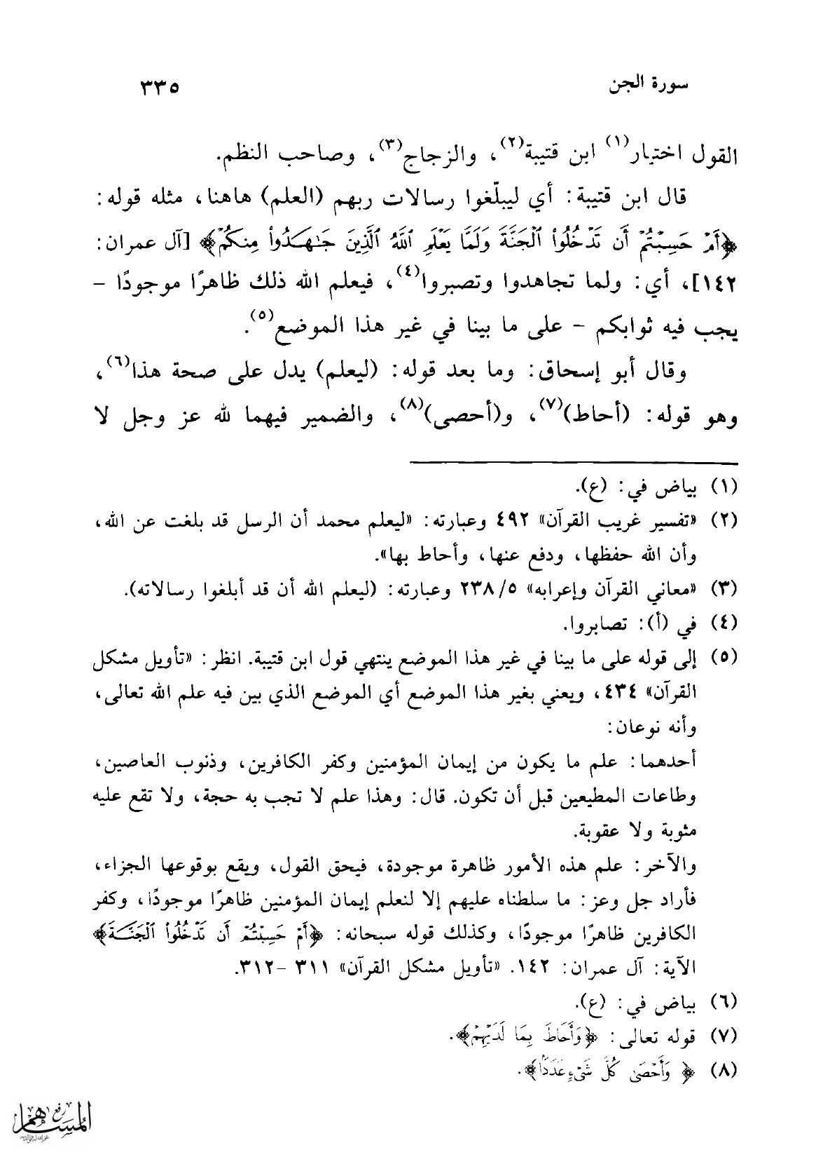 (¬3) "معاني القرآن وإعرابه" 5/ 238 نقله عنه بنصه.